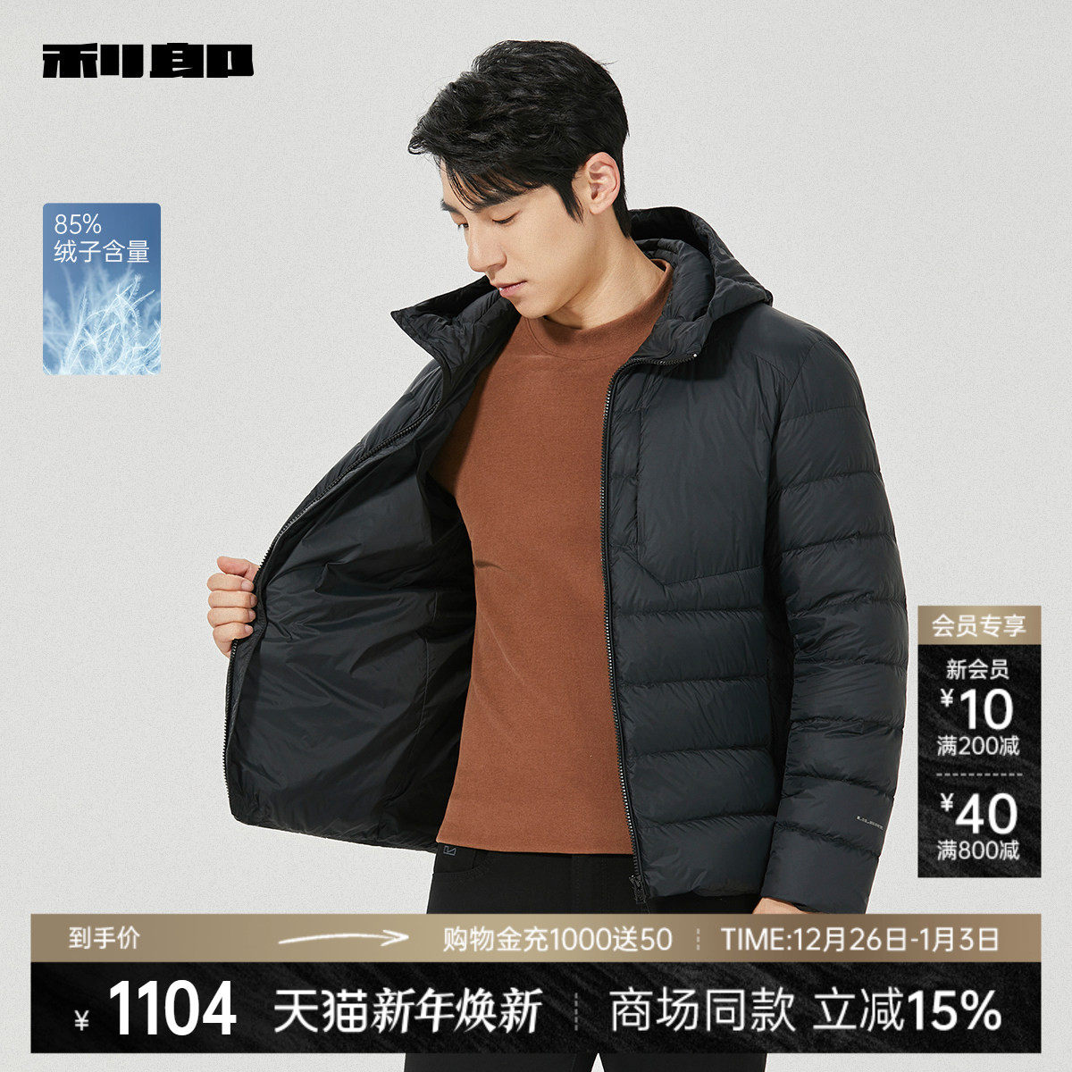 连帽2025冬季 利郎官方轻薄羽绒服男士 外套25DBR1011Y 商场同款