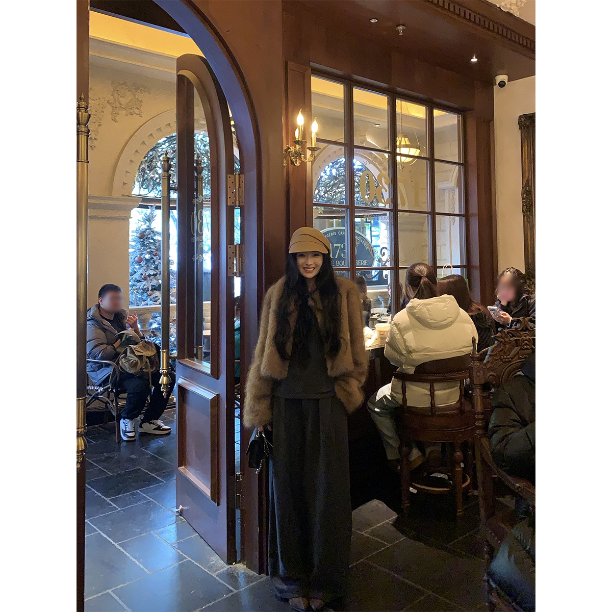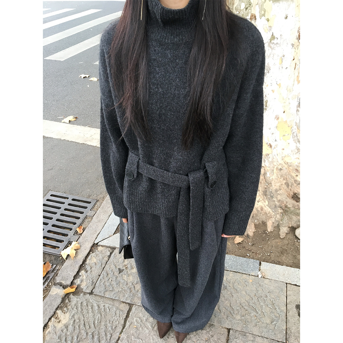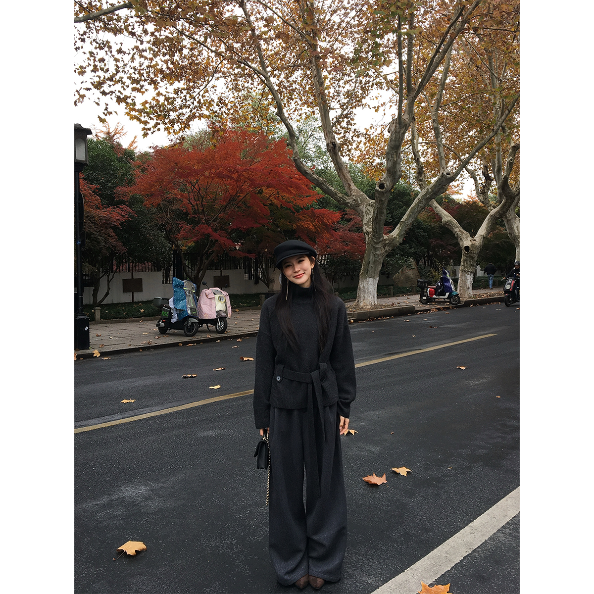 D03 黄亮Elovey 直筒西裤 毛呢灰色高腰显瘦休闲裤 高知清冷感