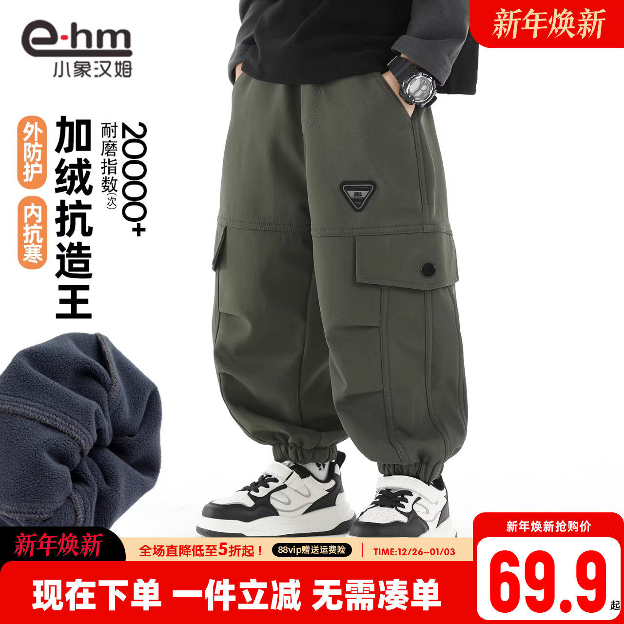 2025新款 小象汉姆男童一体绒软壳裤 裤 儿童耐磨户外工装 加绒长裤