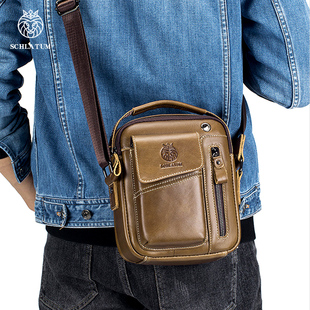 2025新款 小斜挎包真皮单肩包潮流休闲大容量双层百搭 头层牛皮男士