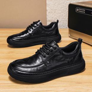 春季 纯黑色工作防水棉鞋 加绒保暖休闲皮鞋 男士 英伦风商务正装 男鞋