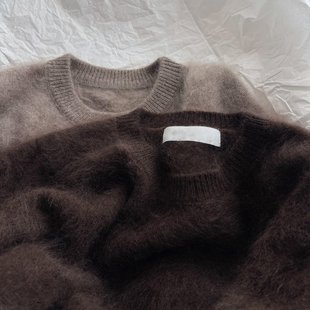 软糯慵懒风针织衫 CHAO级推荐 美拉德复古咖色羊毛拉绒毛衣女冬季