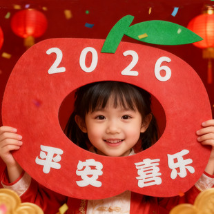 2026宝宝周岁拍照手持相框儿童生日场景布置马年影楼拍照道具毛毡