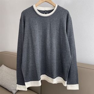 毛衣 高支高密绵羊毛宽松针织衫 一勺米 松弛感假两件Gray灰针织衫