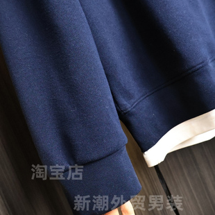 长袖 设计师线 复合加绒保暖时尚 秋冬男士 保暖卫衣潮 腔调假两件