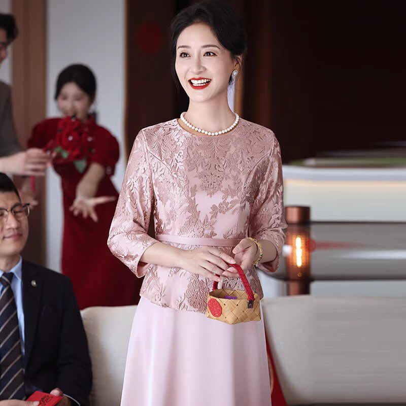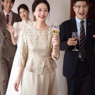 旗袍妈妈装 中式 结婚礼服假两件套裙子 2025新款 10月份喜婆婆婚宴装
