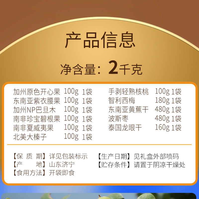 美荻斯坚果礼盒1号尚品2000g干果零食碧根果开心果新年礼物送长辈