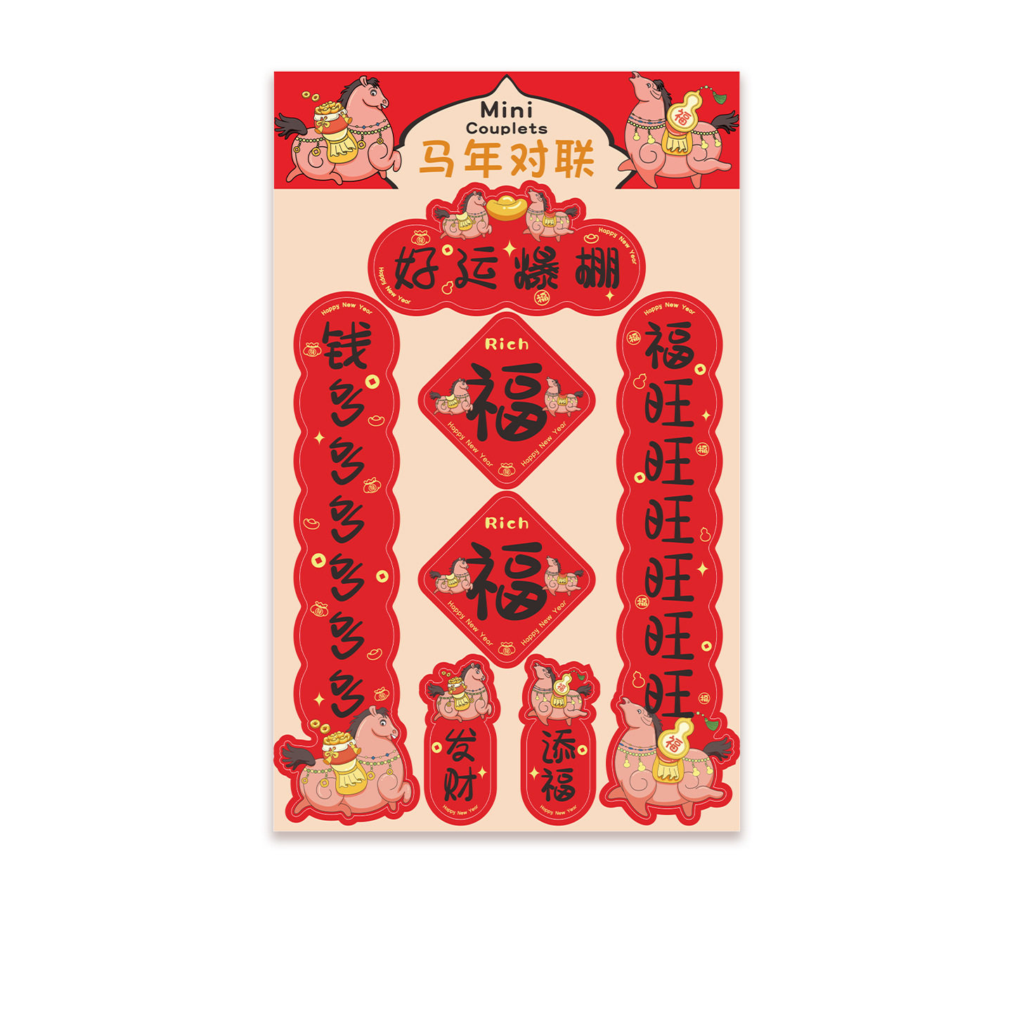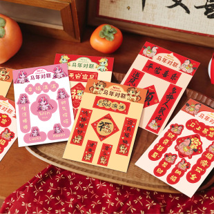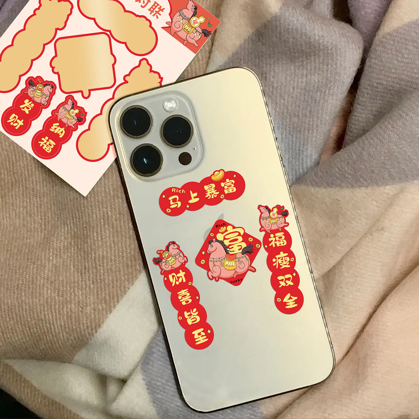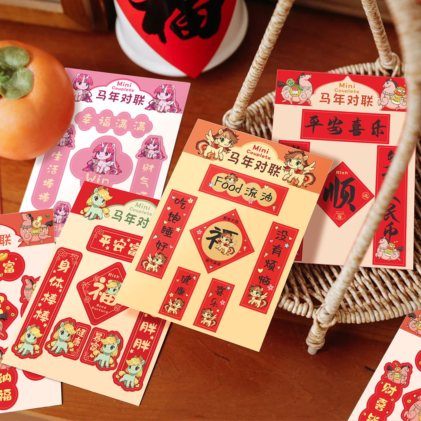 马年小对联贴纸新年迷你小春联贴画过年创意手机水杯春节装 饰帖纸