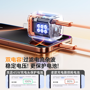 13手机 塔菲克适用苹果17充电器iPhone16ProMax小冰块30W充电头15氮化镓PD35W快充14数据线套装 45W快充头