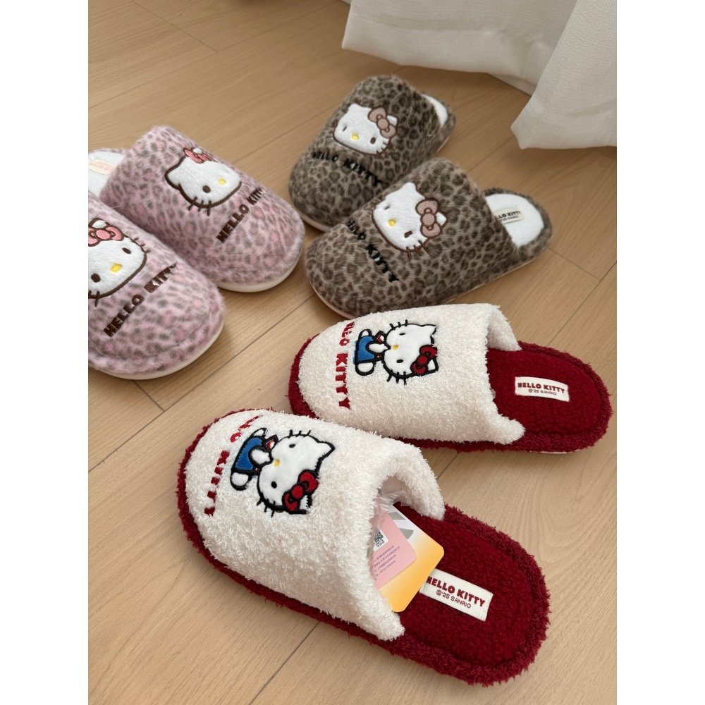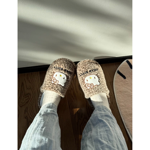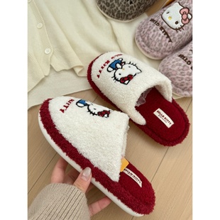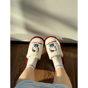 可爱卡通凯蒂猫包头棉拖鞋 平底居家防滑保暖毛毛拖 女2025秋冬新款