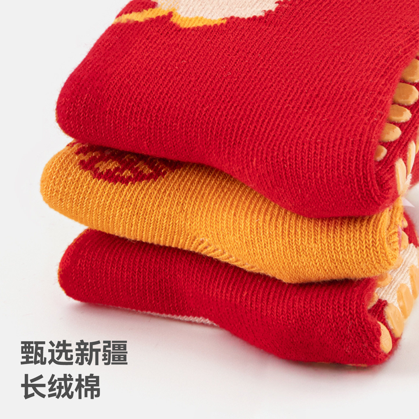 贝肽斯宝宝地板袜儿童防滑学步中筒棉袜秋冬婴儿红色新年袜子S