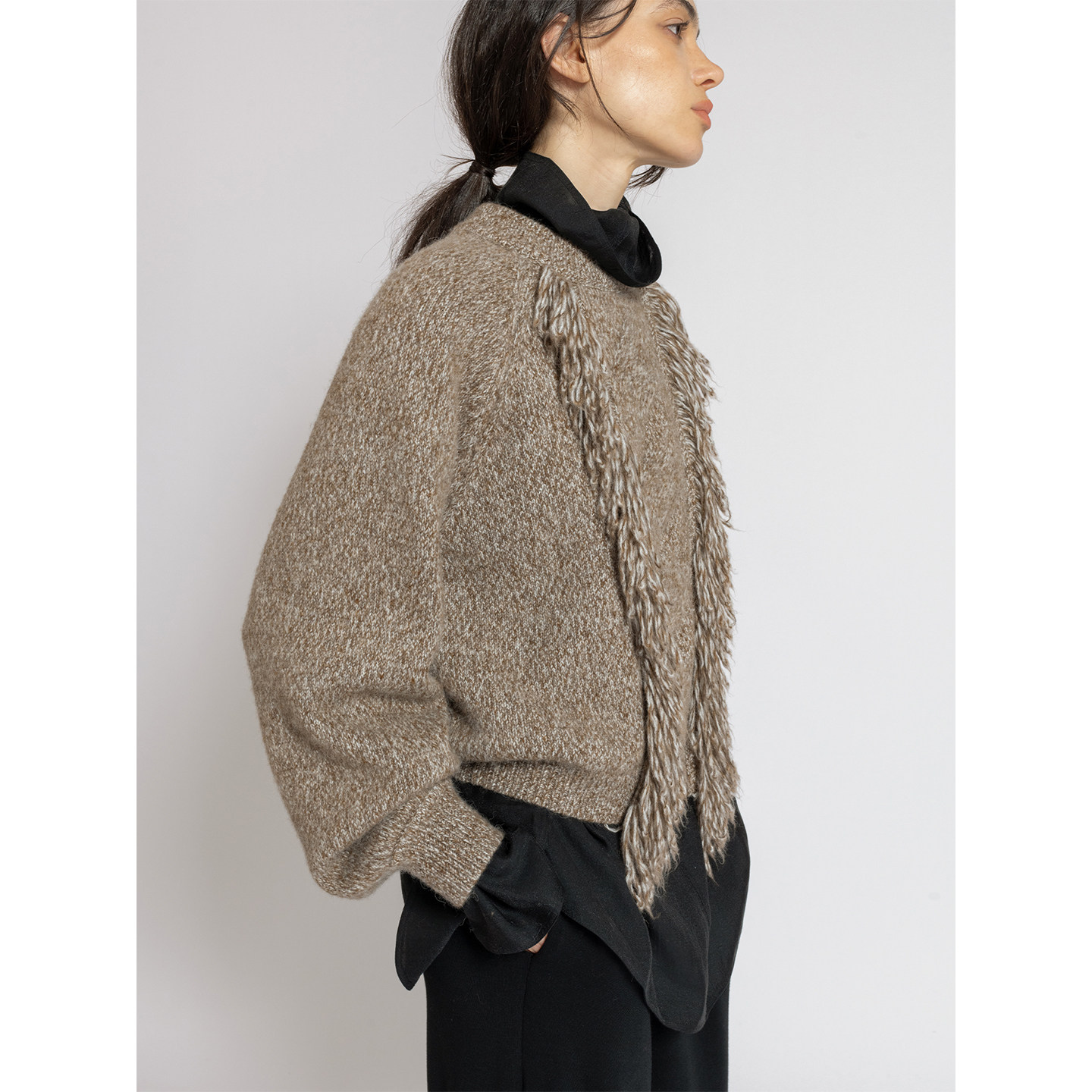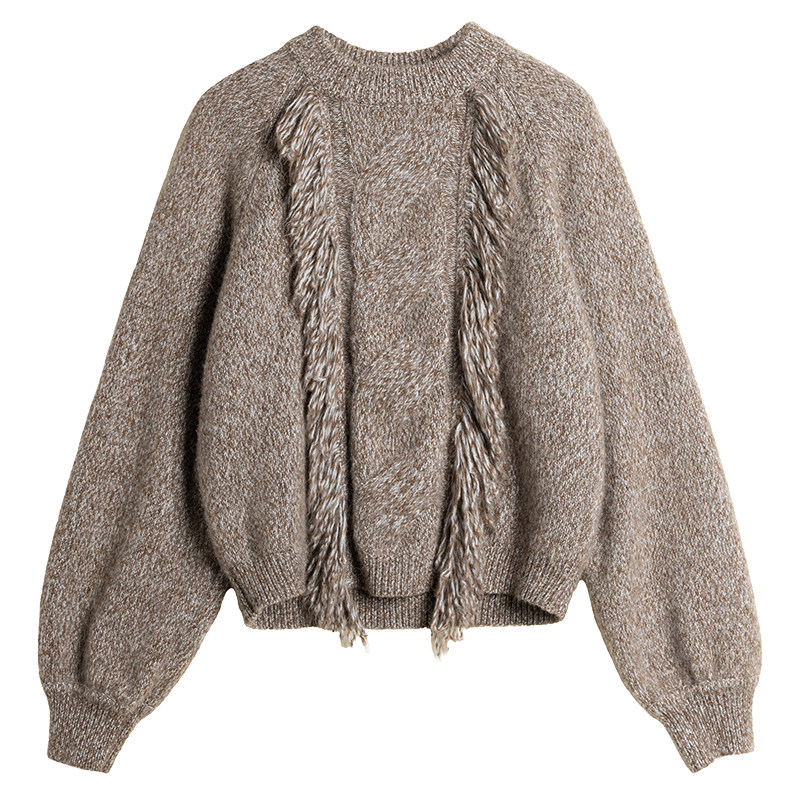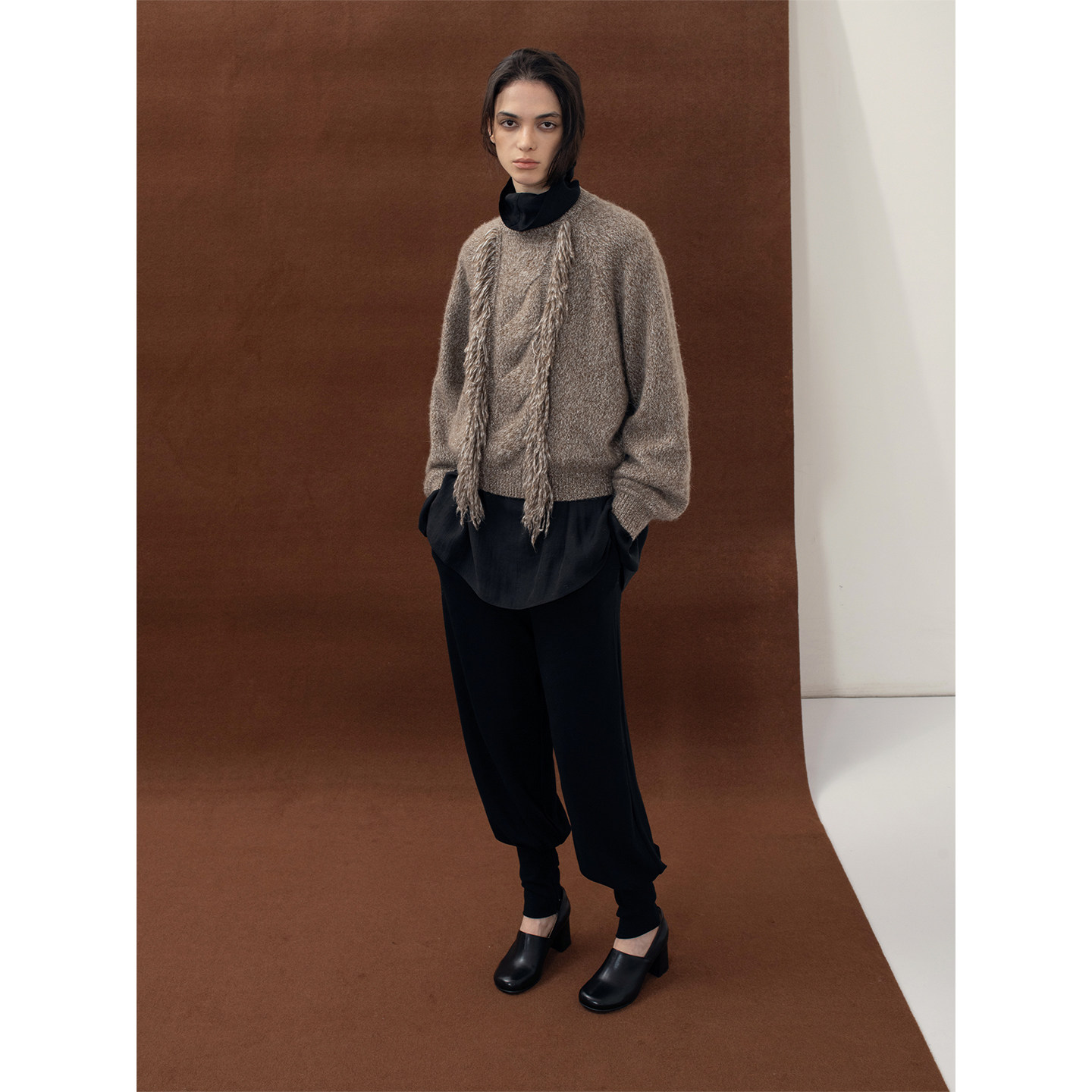 322WORKHOUSE羊毛混纺拉毛绞花毛衣女2025新款 B867 秋冬流苏针织衫