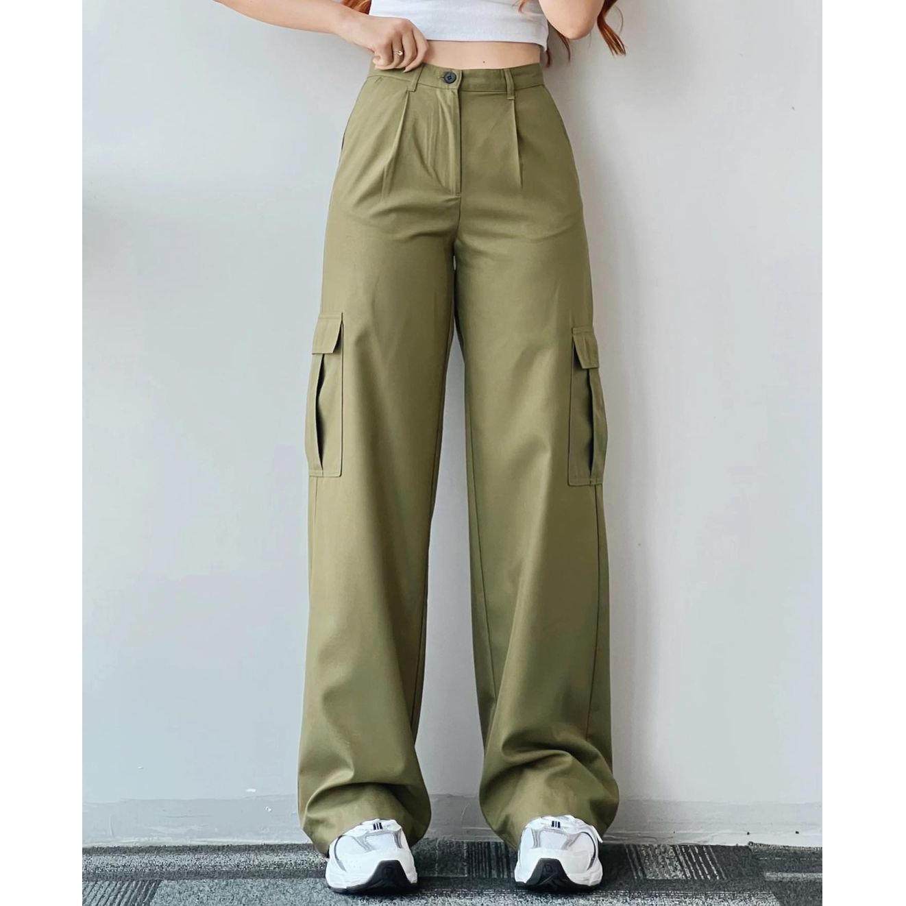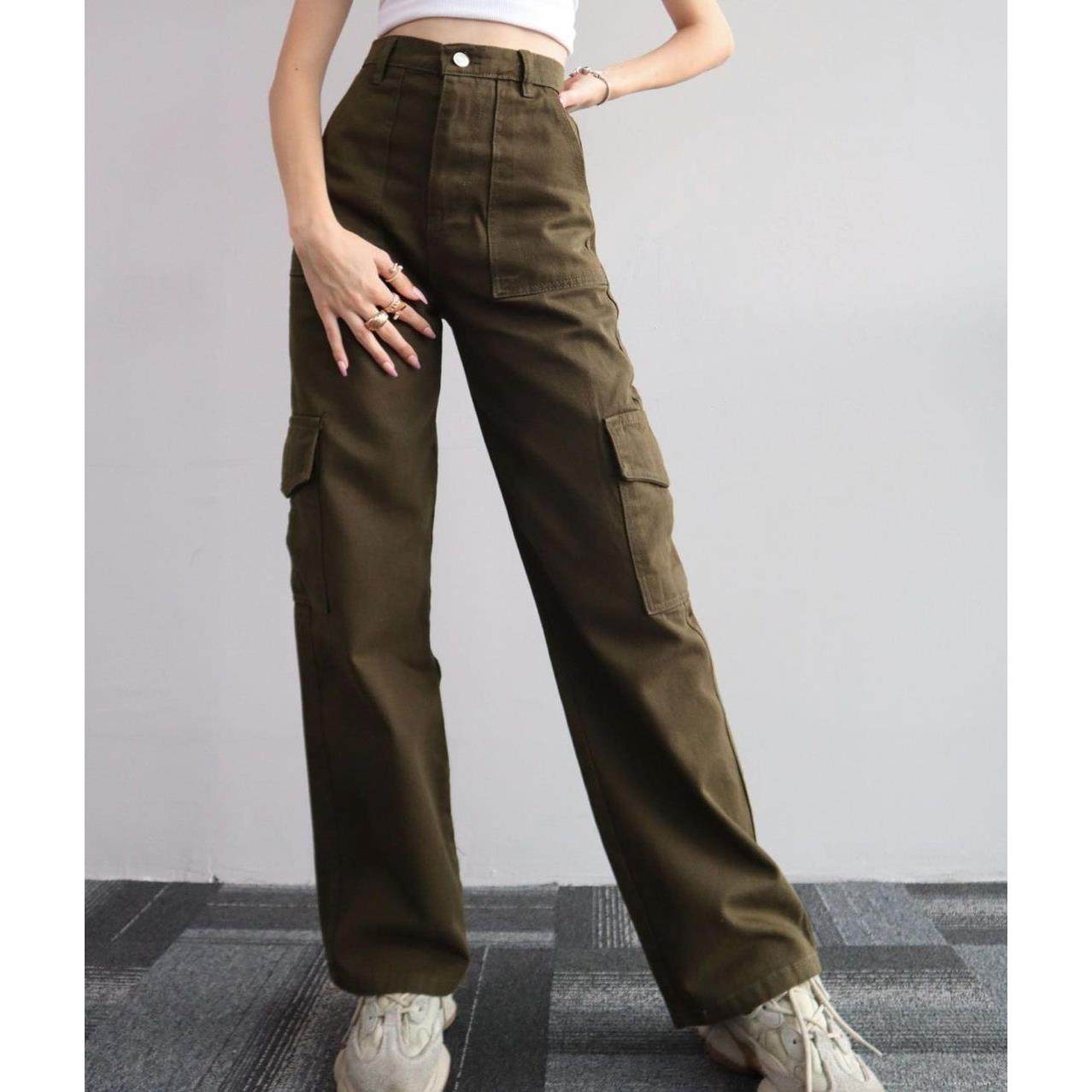 Pants Women HighWaist Straight Trousers Cargo Baggy Lady Leg