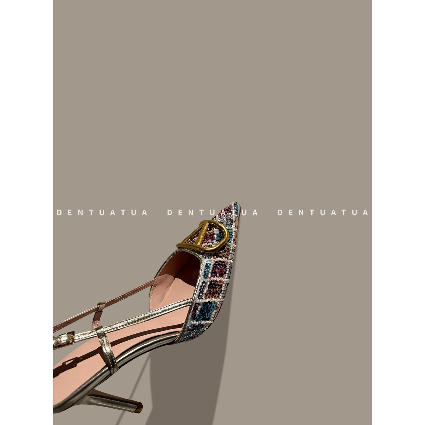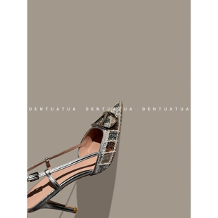 尖头金属扣水钻后空包头高跟凉鞋 25FW 女 红毯级战鞋 DENTUATUA
