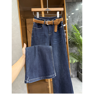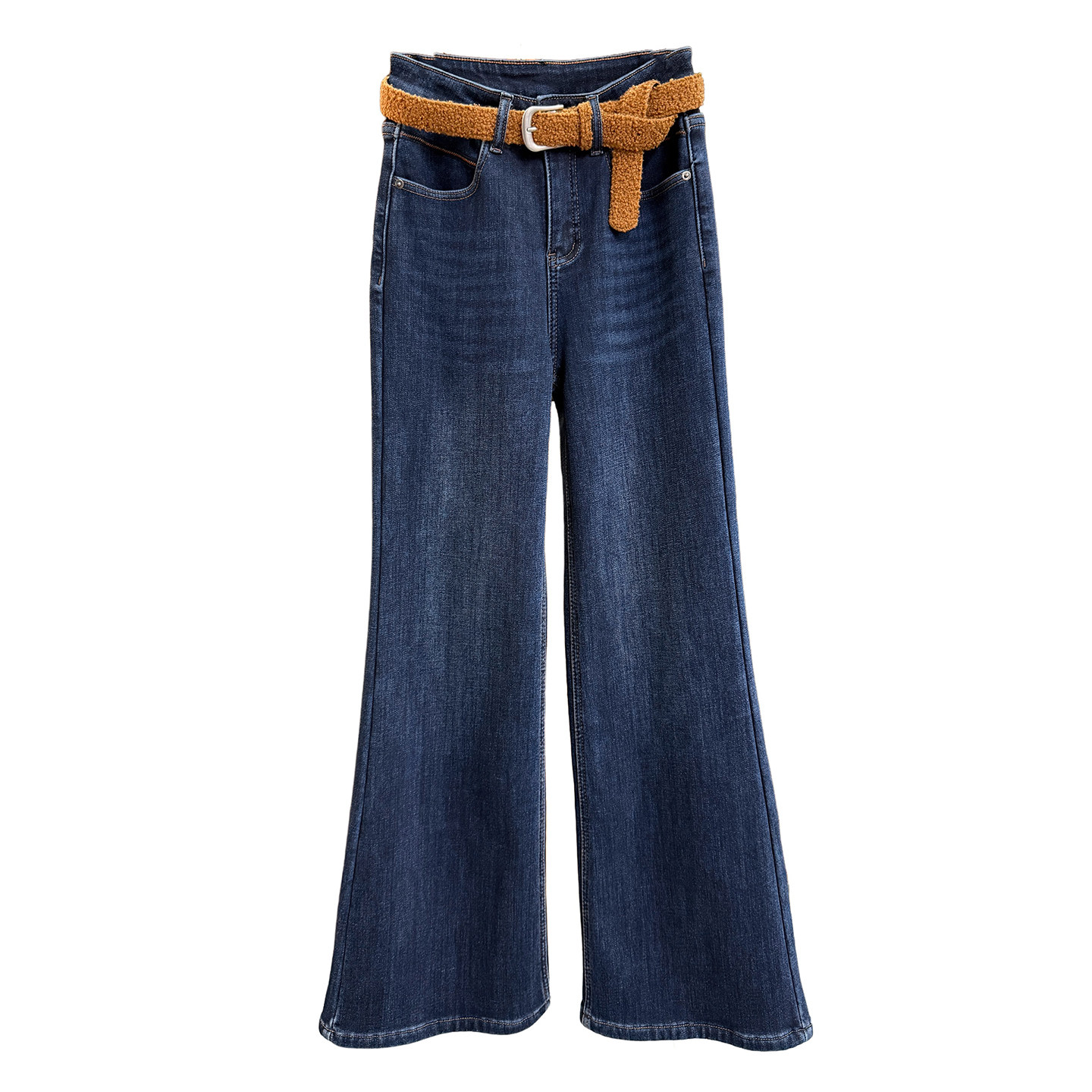 宽松显瘦深蓝色阔腿裤 新款 子 女2025年冬季 逸阳加绒加厚直筒牛仔裤