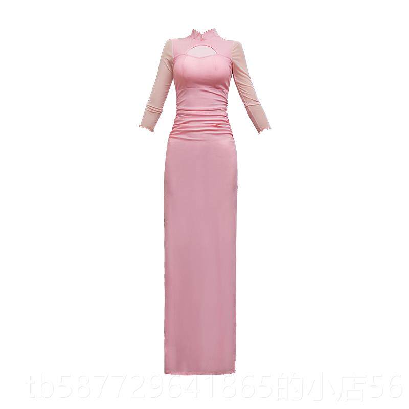 礼纱服裙 女士黑身色网七分袖 正品 性感晚礼服修显气质连衣瘦裙长款