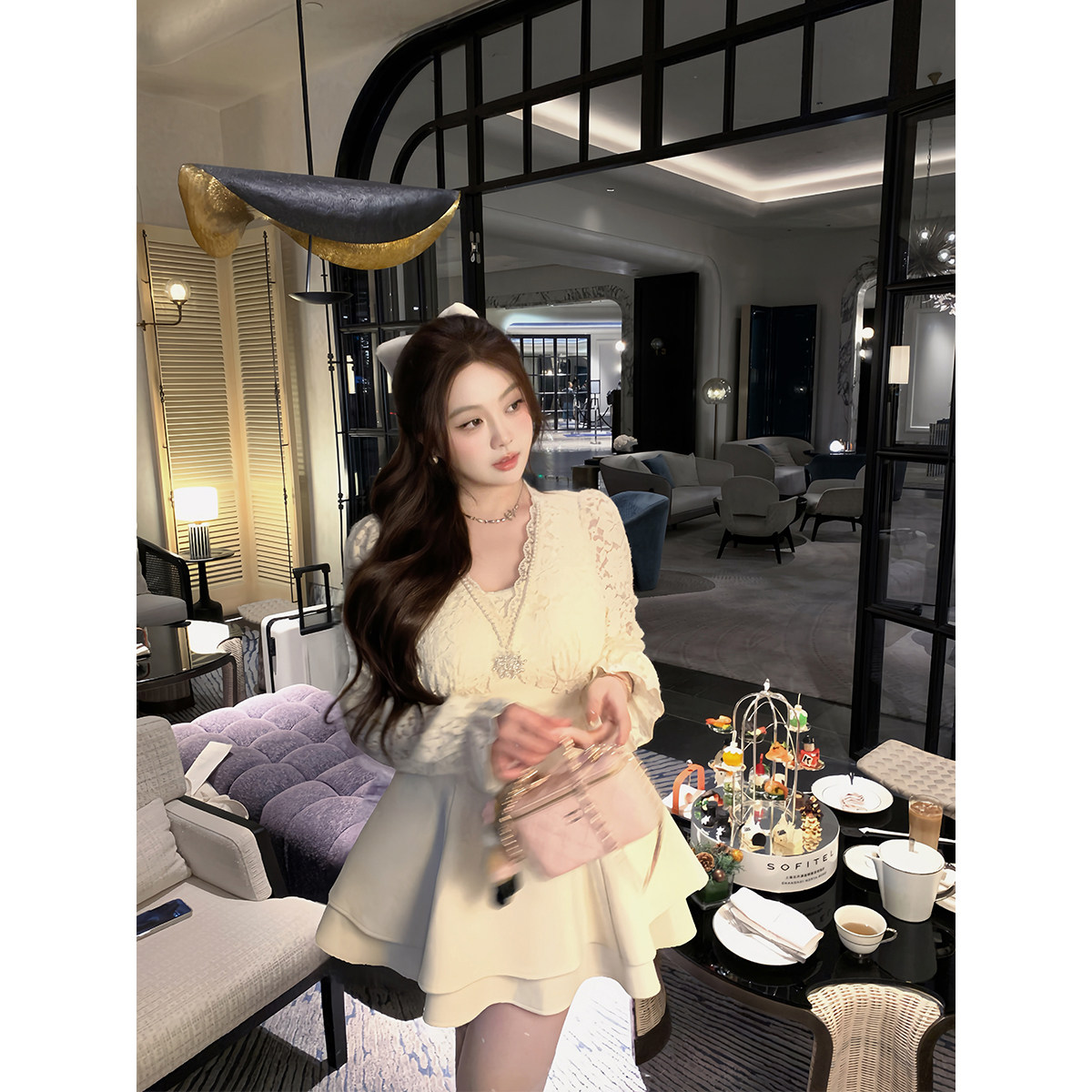 短 长 蕾丝网纱蝴蝶结百褶花边甜美白富美连衣裙 爱丽丝 熊熊屋
