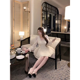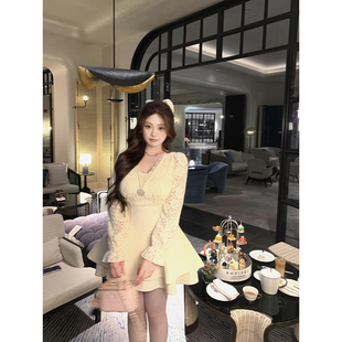 名媛贵气短裙古早针织连衣裙秋冬 羊毛纯欲毛茸茸修身 现货 兔毛