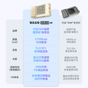 se摄影补光灯拍摄专用打光灯便携式 智云五倍m40 直播相机拍照视频人像发丝灯led手持口袋常亮灯 新品