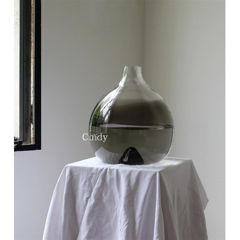 玻璃花瓶轻奢高级感摆件客厅插花大肚透明吊钟南天竹玄关极简鲜花