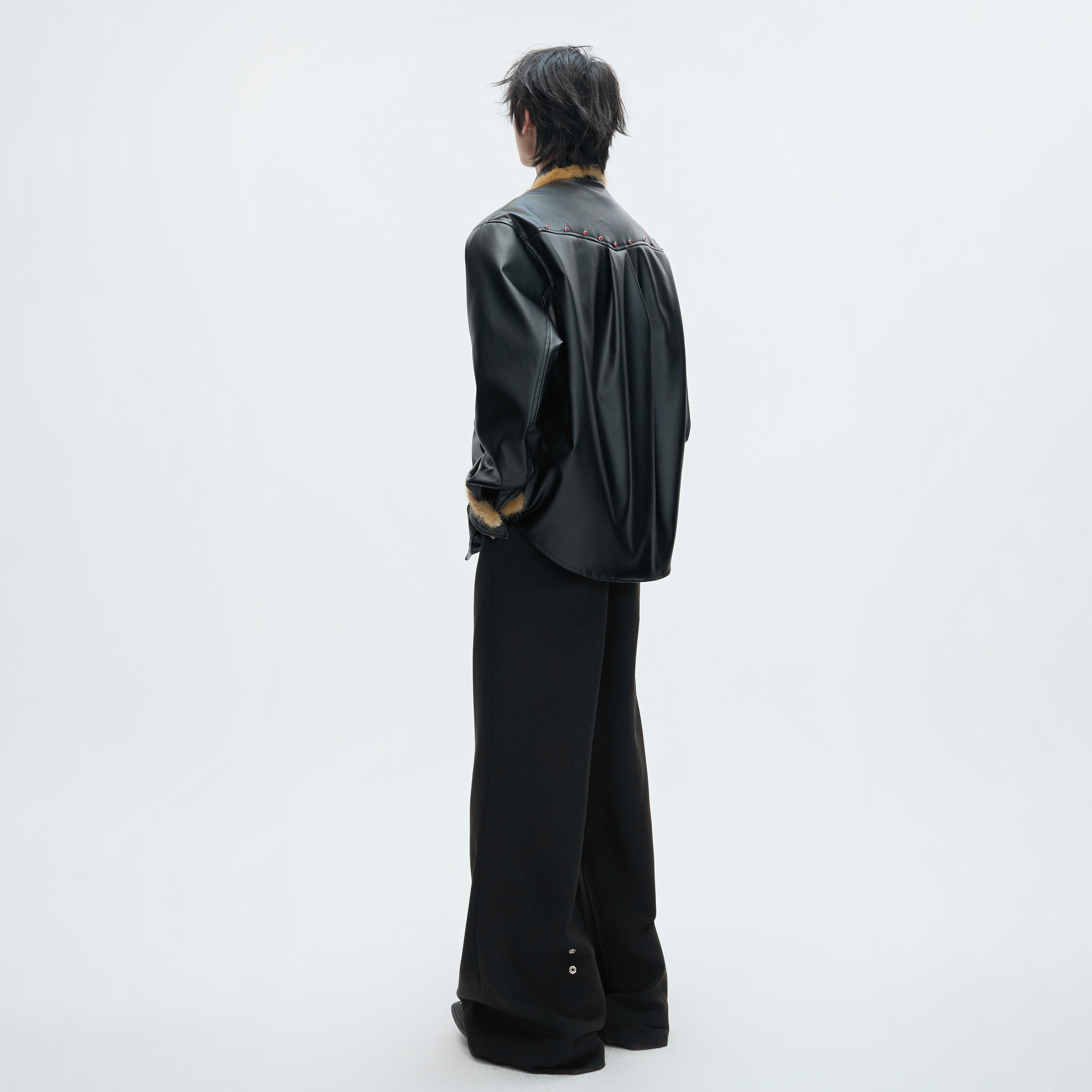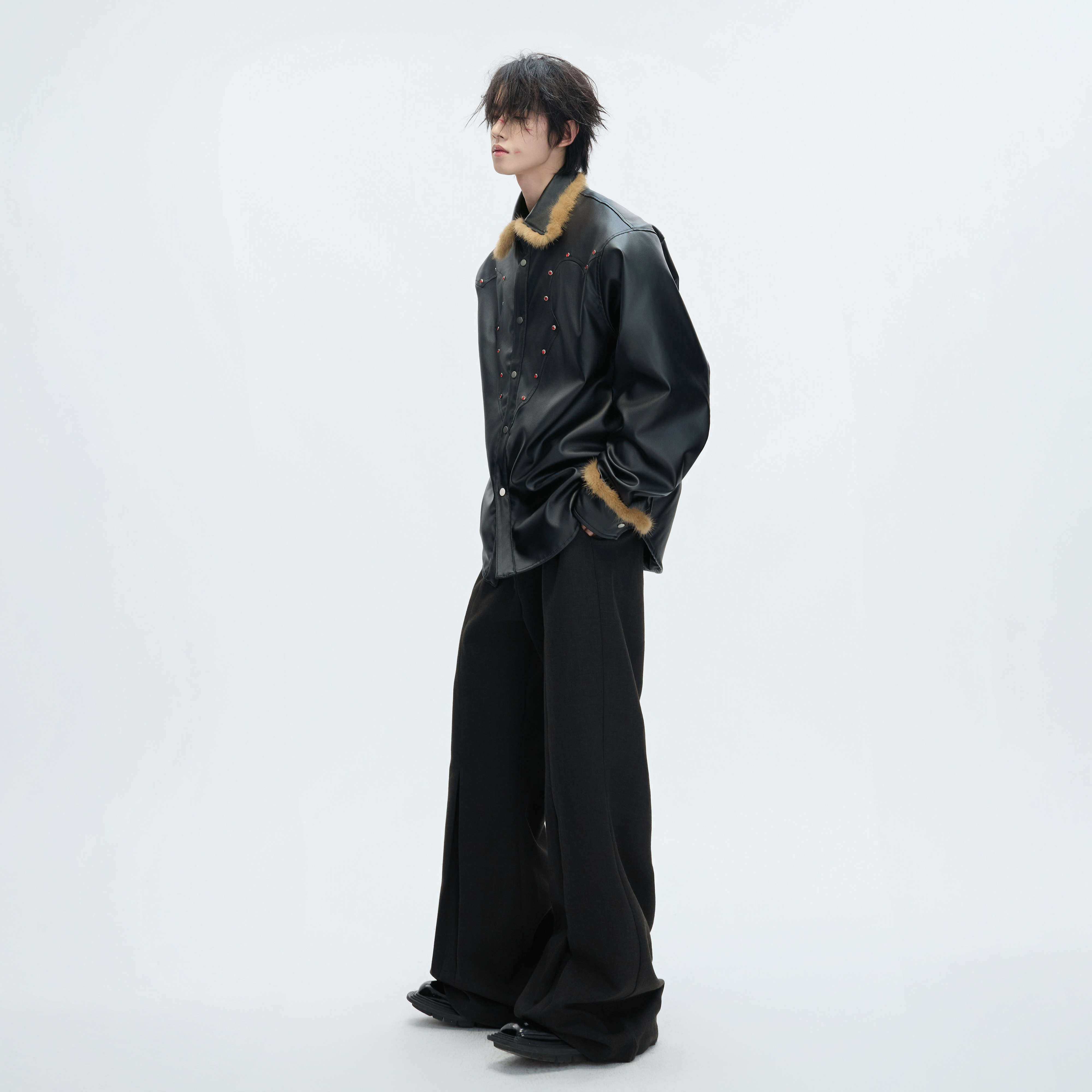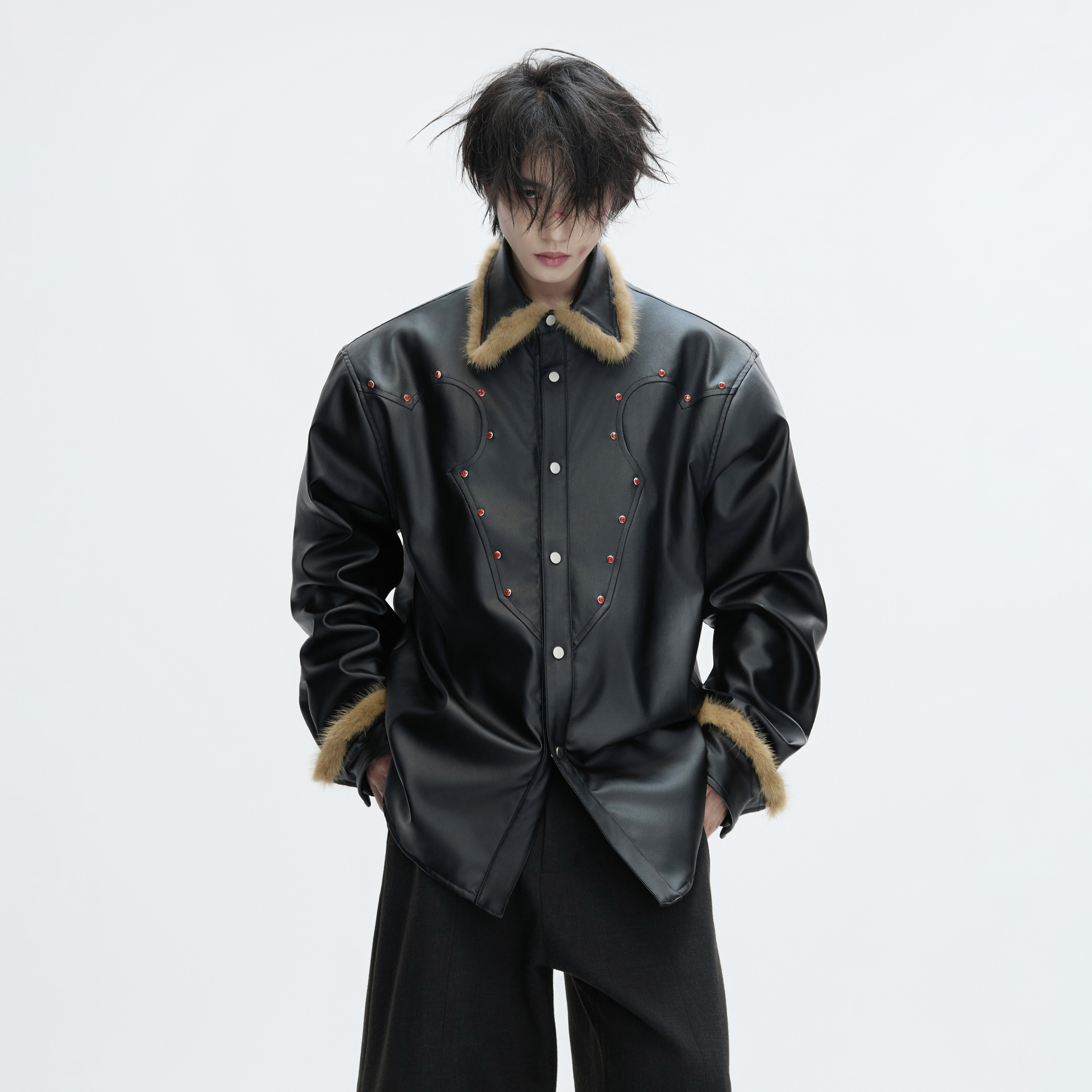 ArguECulturE黑刃 创新逐光加厚加绒外套翻毛领皮衣贵气红钻上衣