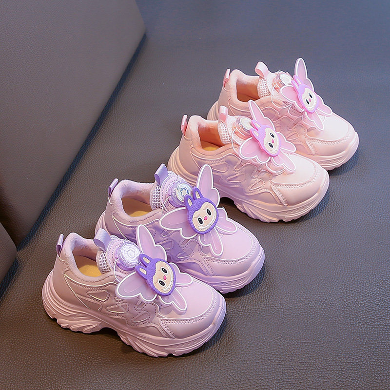 旋转纽扣女孩老爹鞋 女童加绒运动鞋 儿童保暖二棉鞋 新款 拉布布冬季