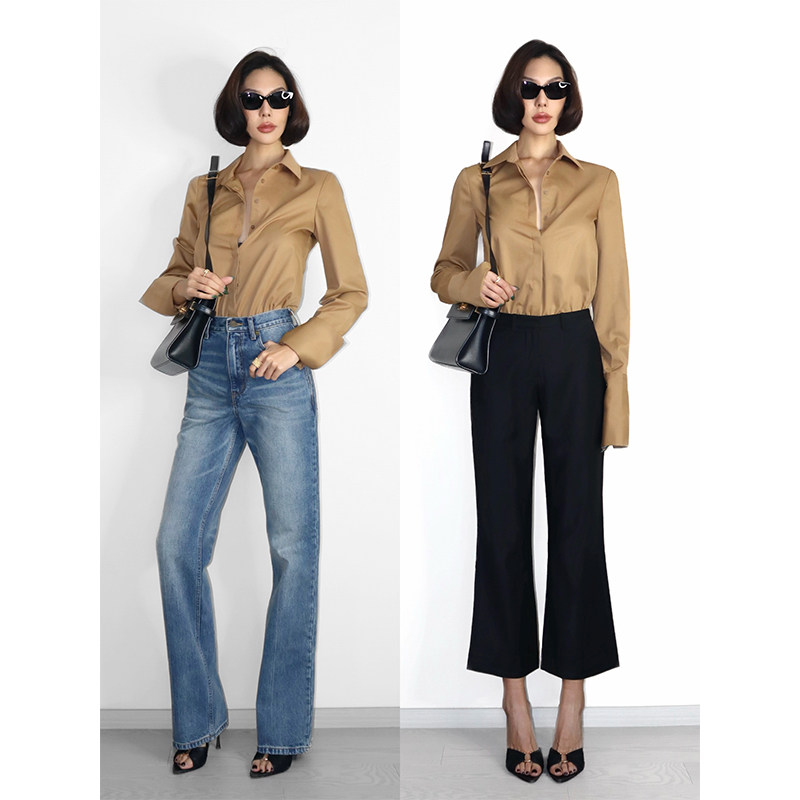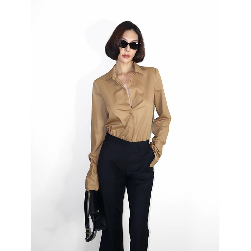 女 衬衫 VanessaLab秋冬气质显瘦正肩连体裤 卡其棕百搭立体通勤长袖