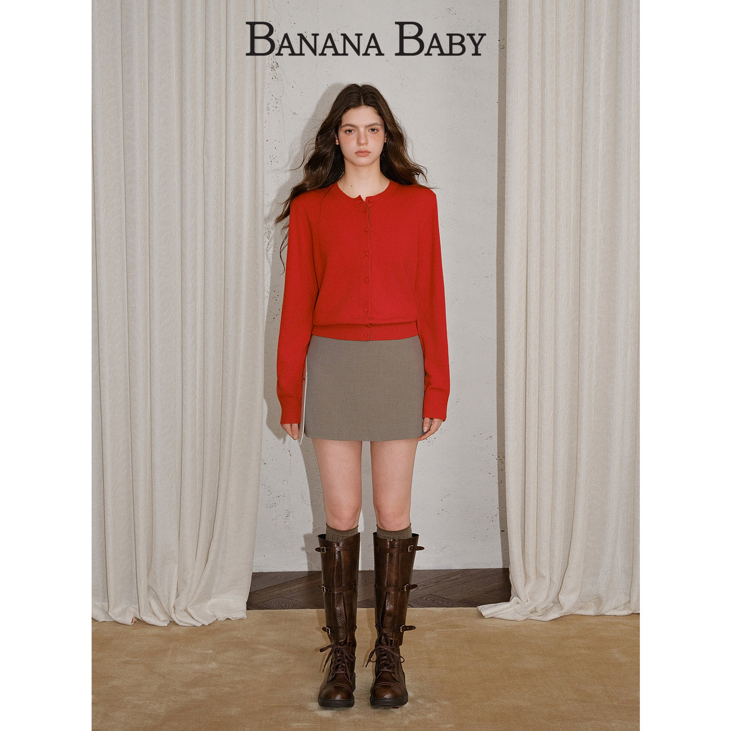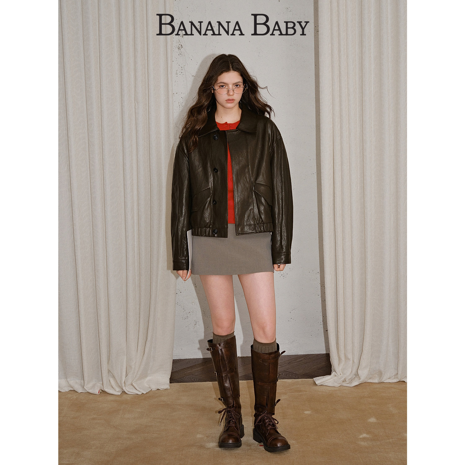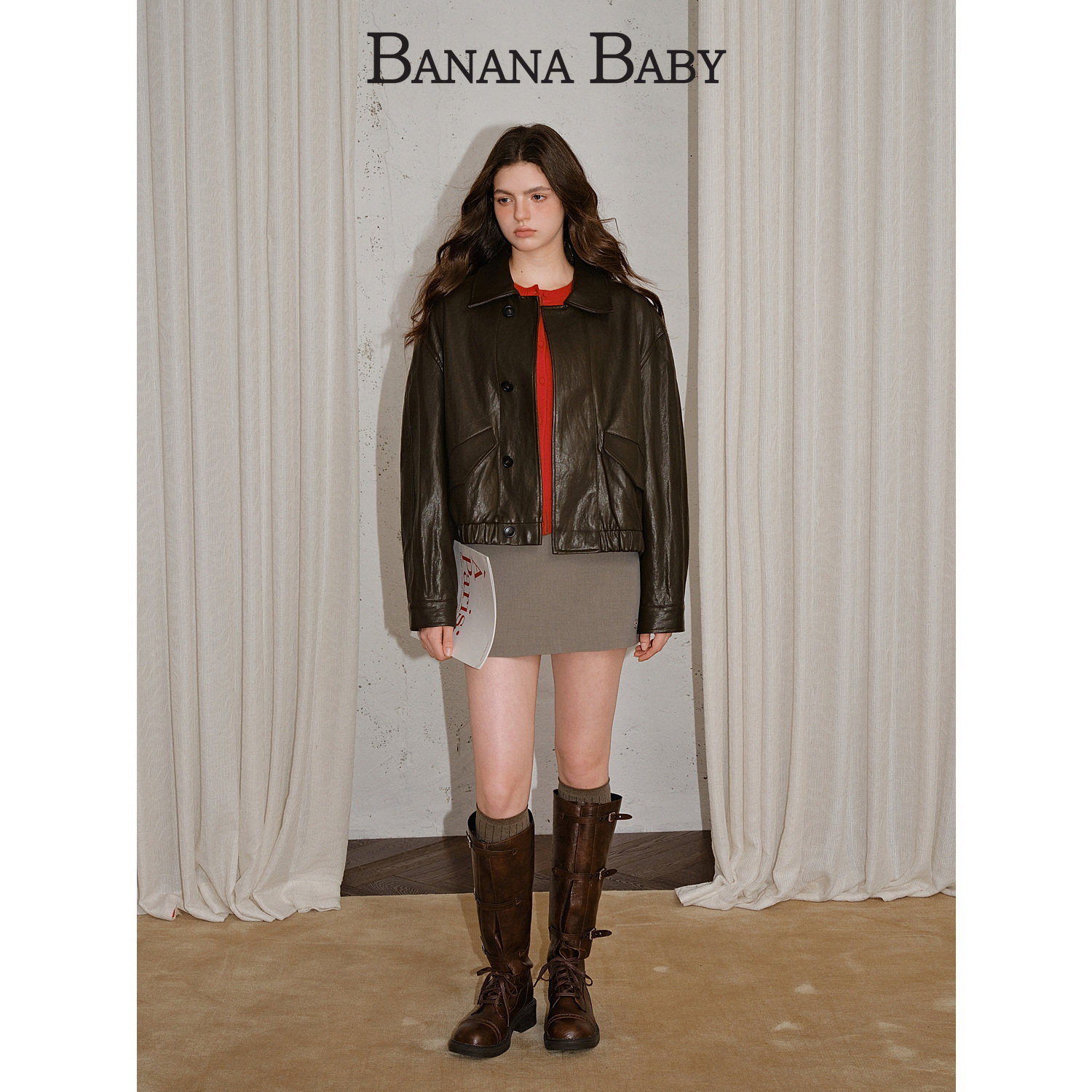 高智风高腰显瘦A字短半裙女配皮质腰带 新款 BANANA BABY2025年冬季
