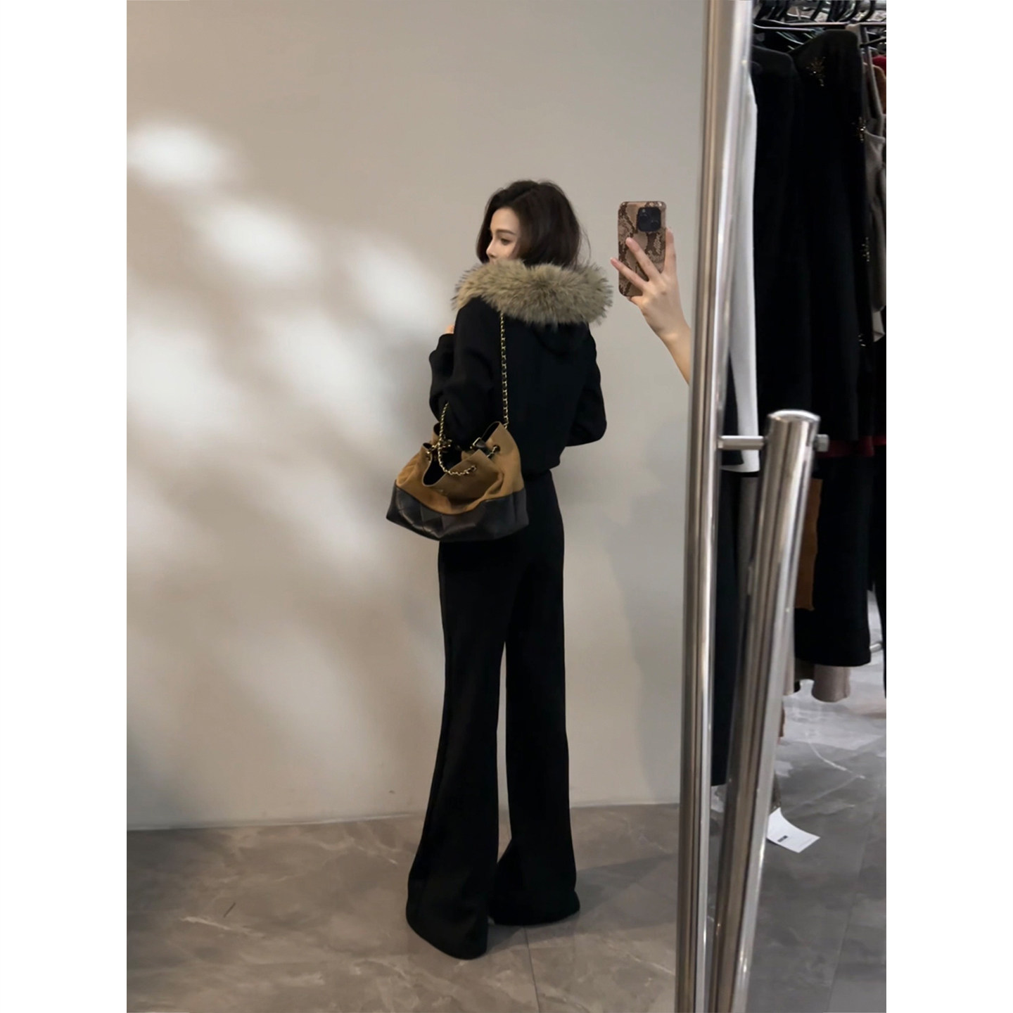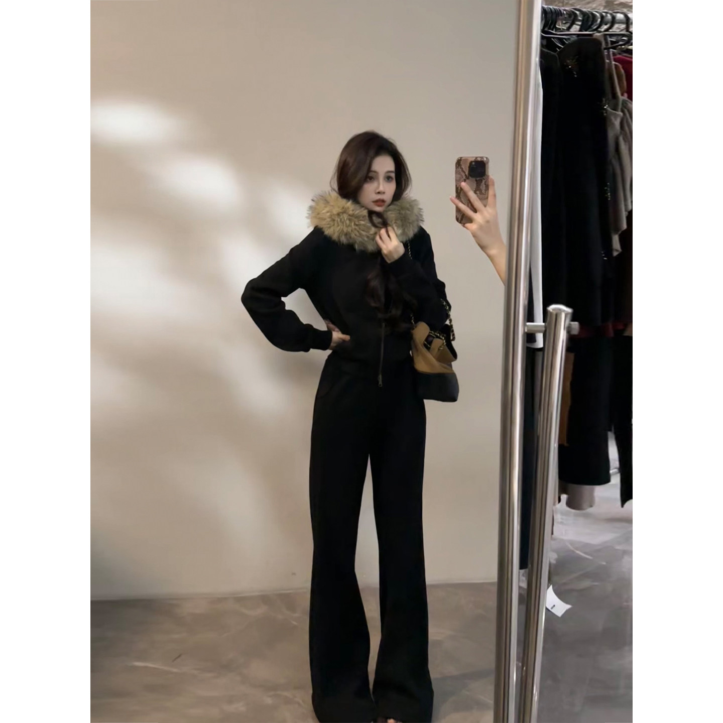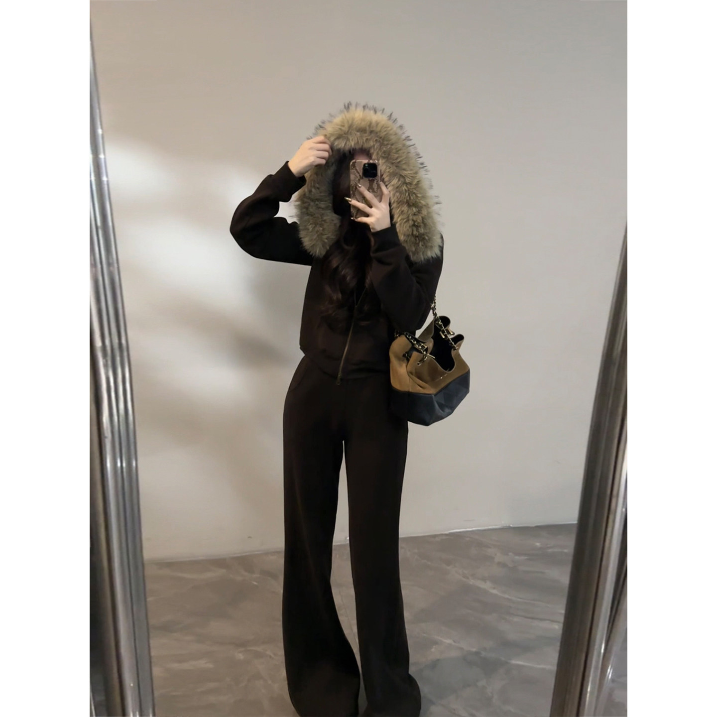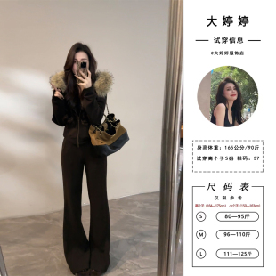 毛毛衣领加绒保暖外套冬季 套装 新款 显瘦阔腿裤 DT1773 时尚 大婷婷
