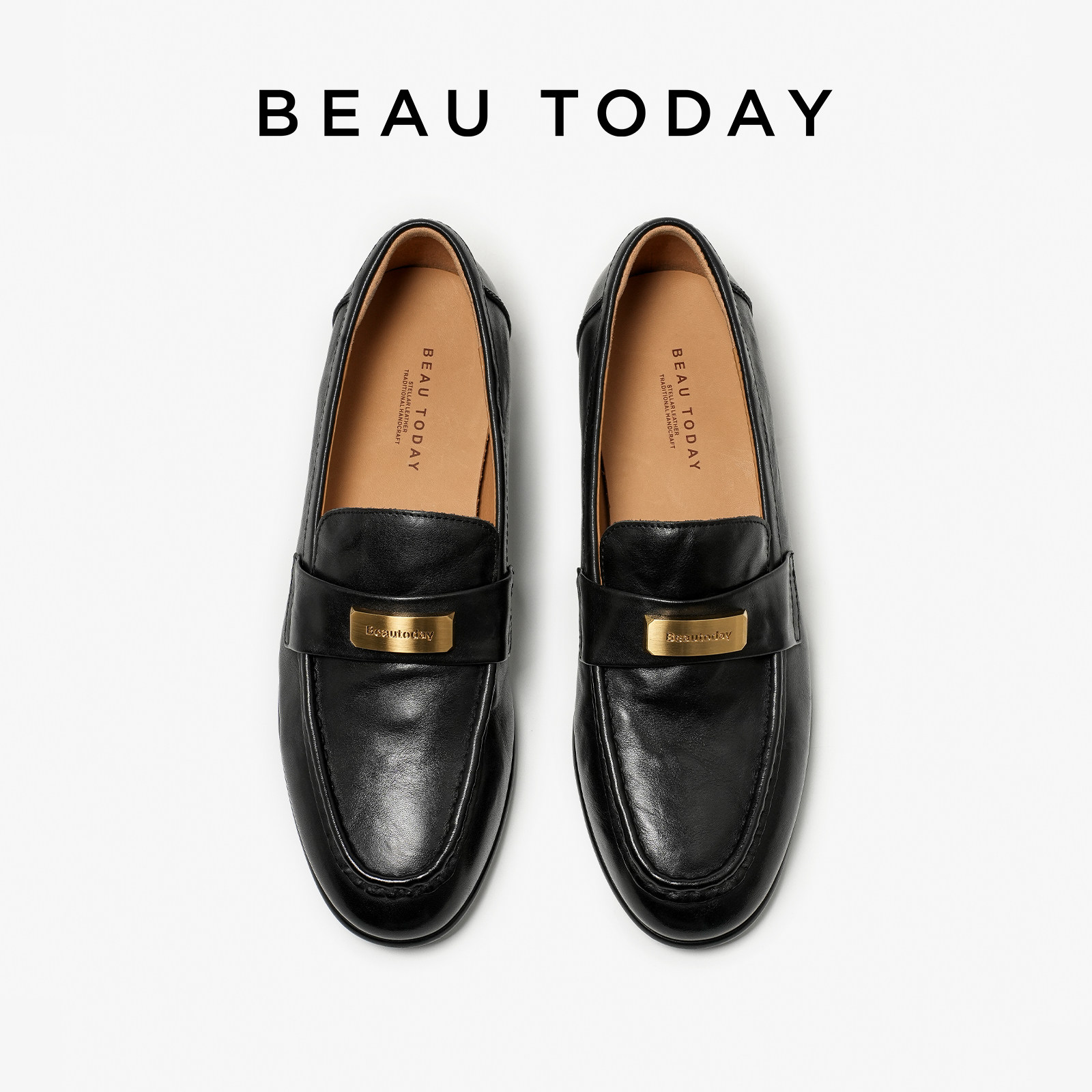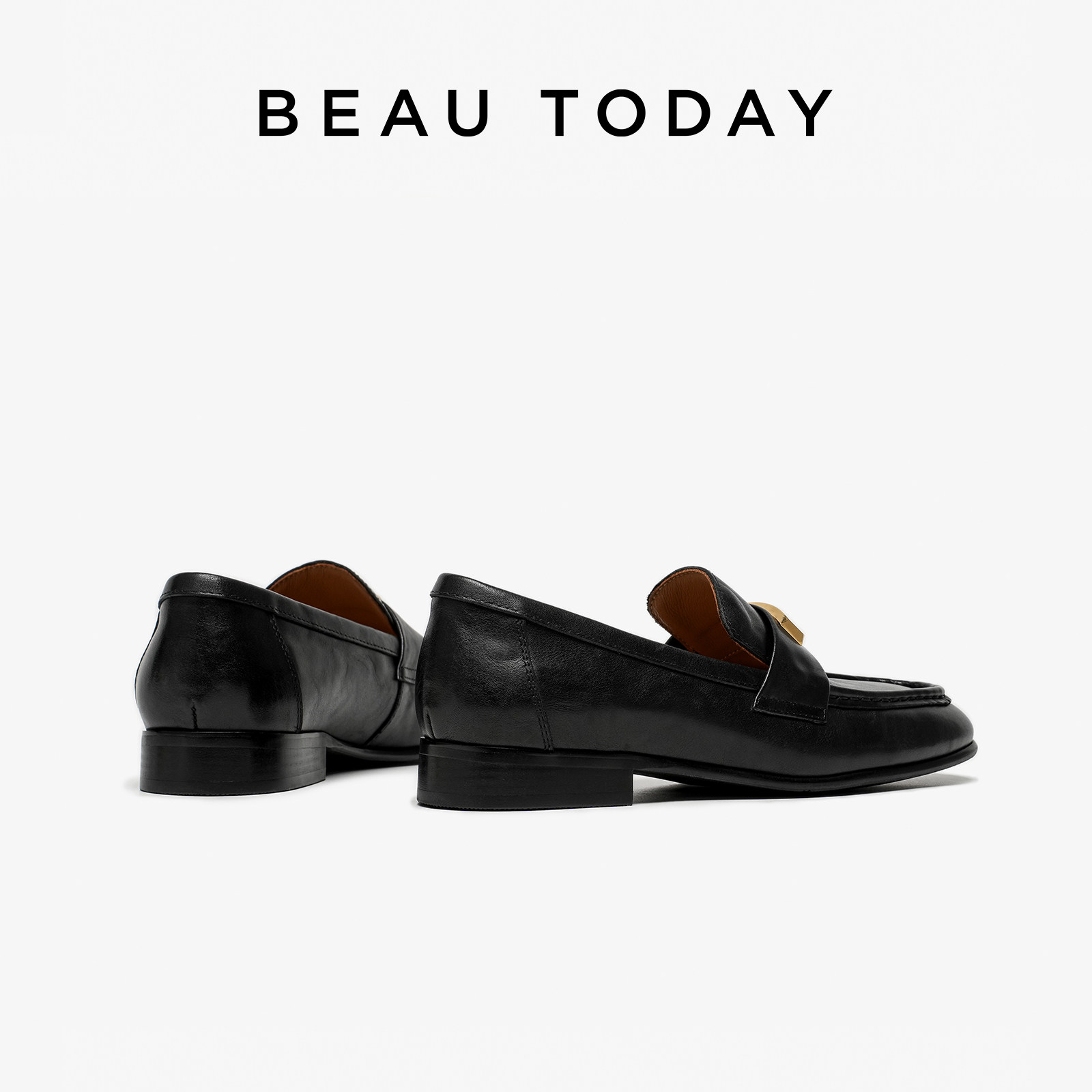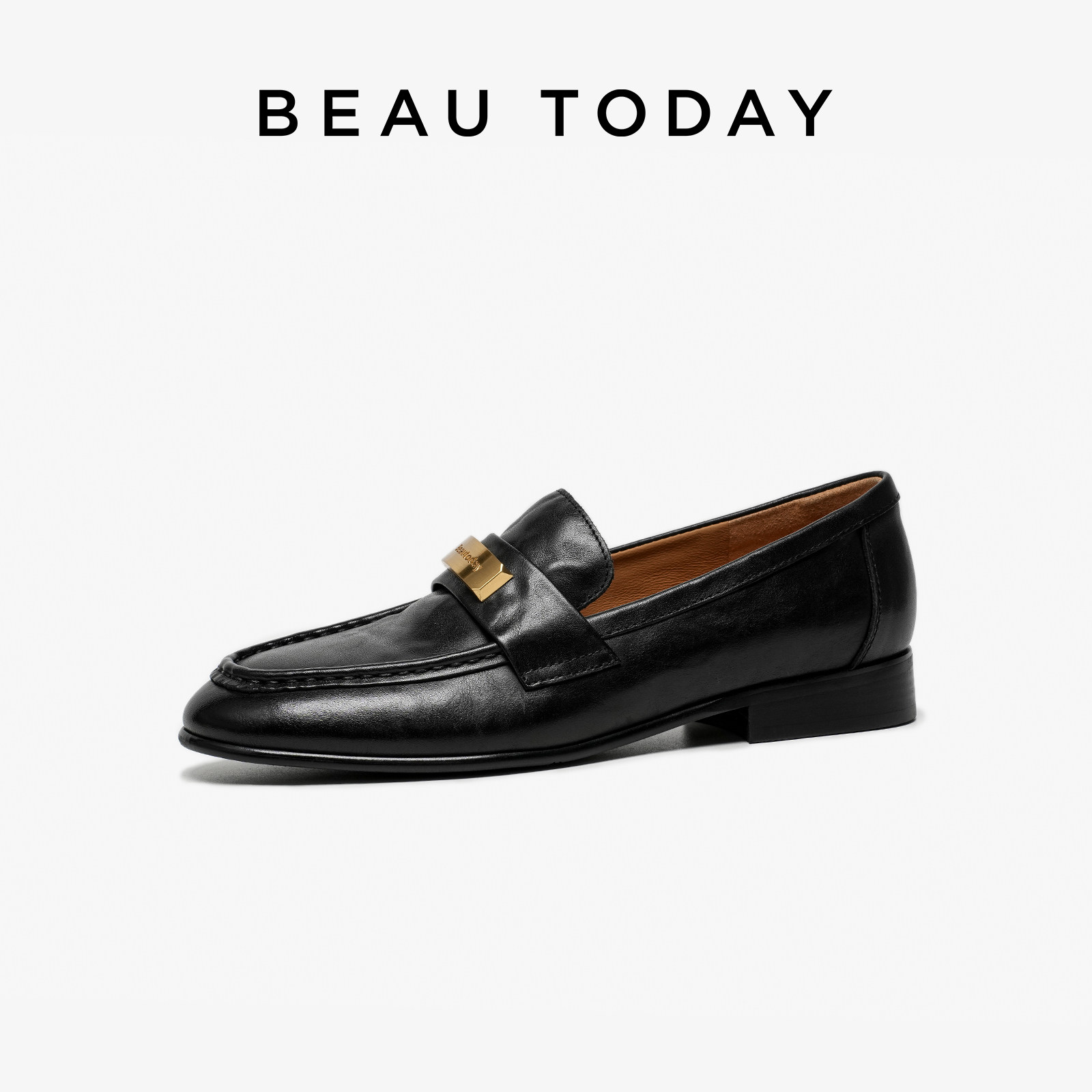 女BT平底单鞋 英伦风黑色小皮鞋 女2026新款 BeauToday一脚蹬乐福鞋