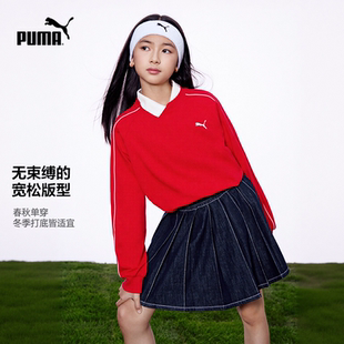 条纹圆领运动T7打底衫 PUMA彪马童装 T恤简约时尚 儿童长袖 2026新款