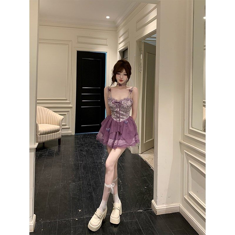 复古重工蕾丝v领连衣裙麂皮鱼骨腰封套装 法式 白马公主 LaceMade