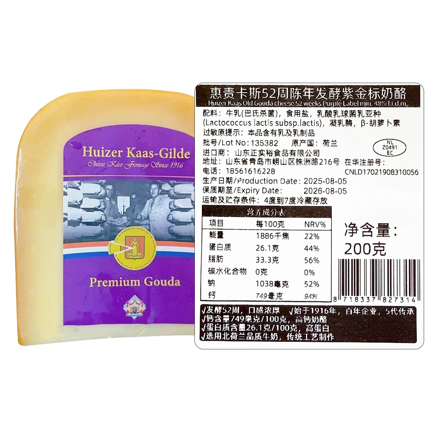 荷兰惠责卡斯52周陈年发酵紫金标奶酪200g芝士高钙高达干酪Gouda