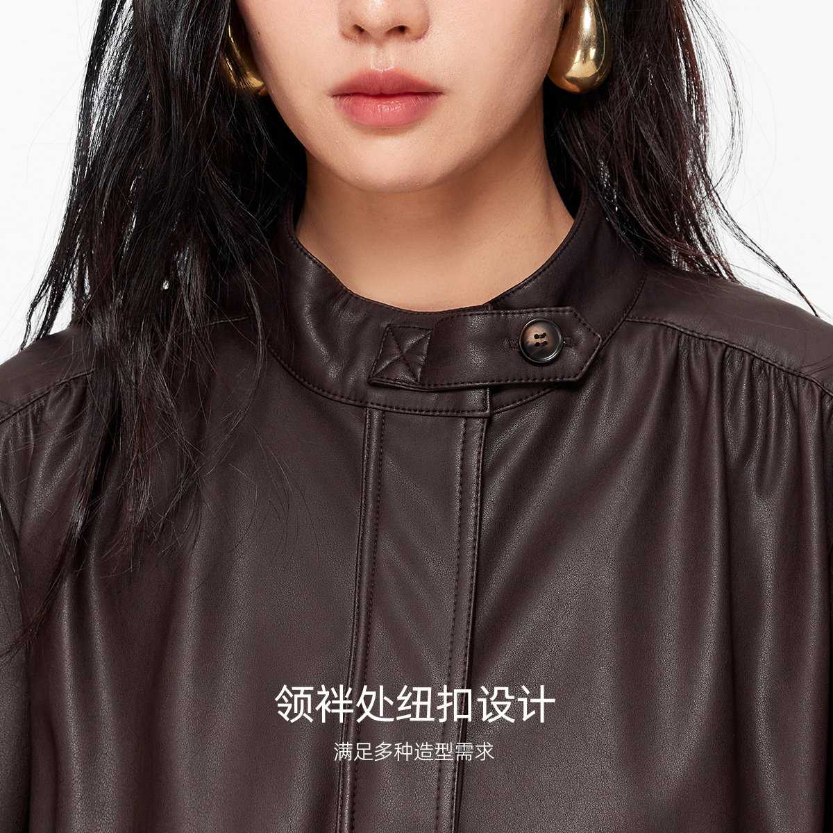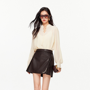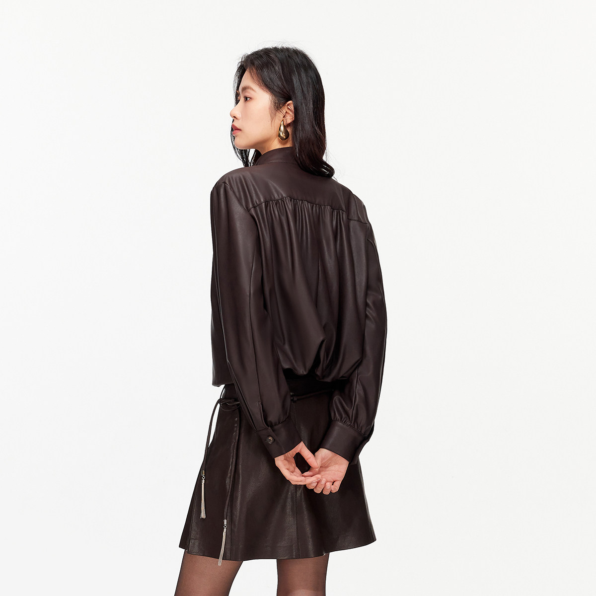 新款 女2026春季 抽褶哑光PU外套A字半身裙326117008 Moda套装 Vero