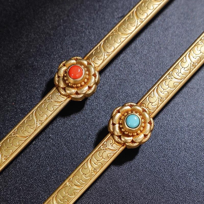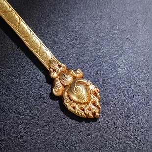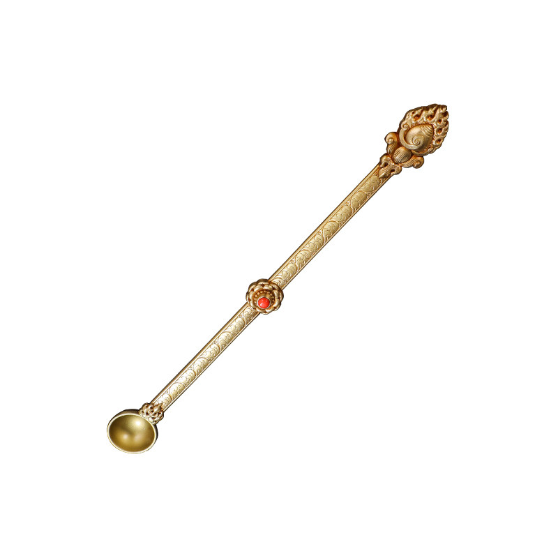 慧宝铜勺子镶嵌彩珠酥油灯勺摩尼宝纹铜勺长23cm