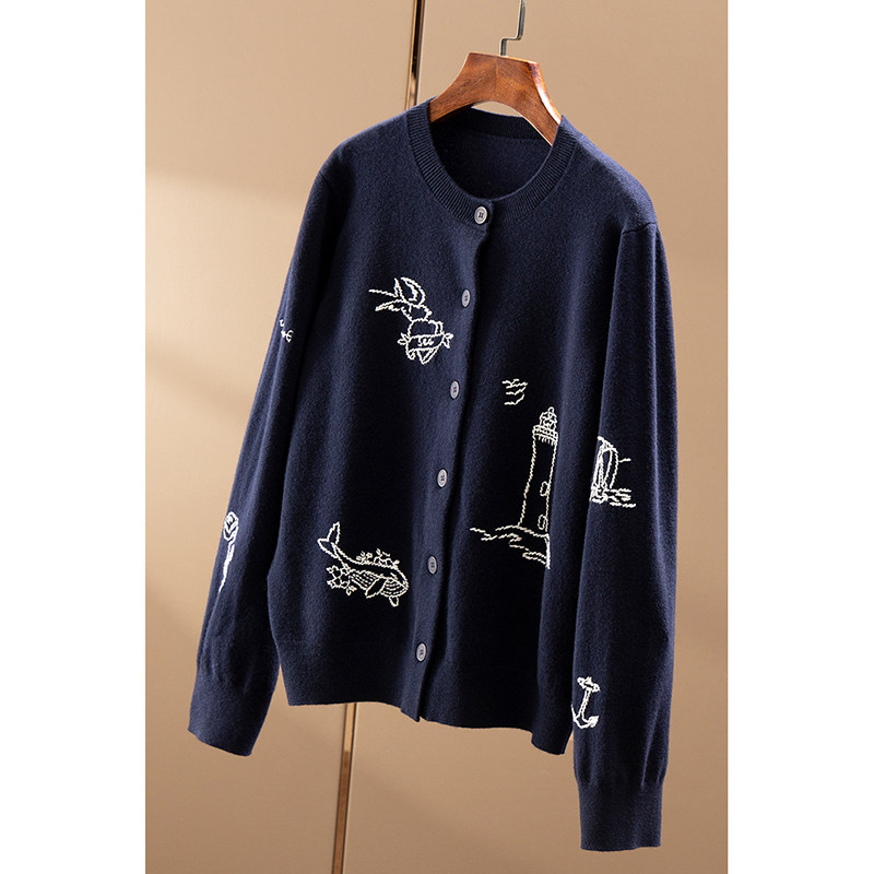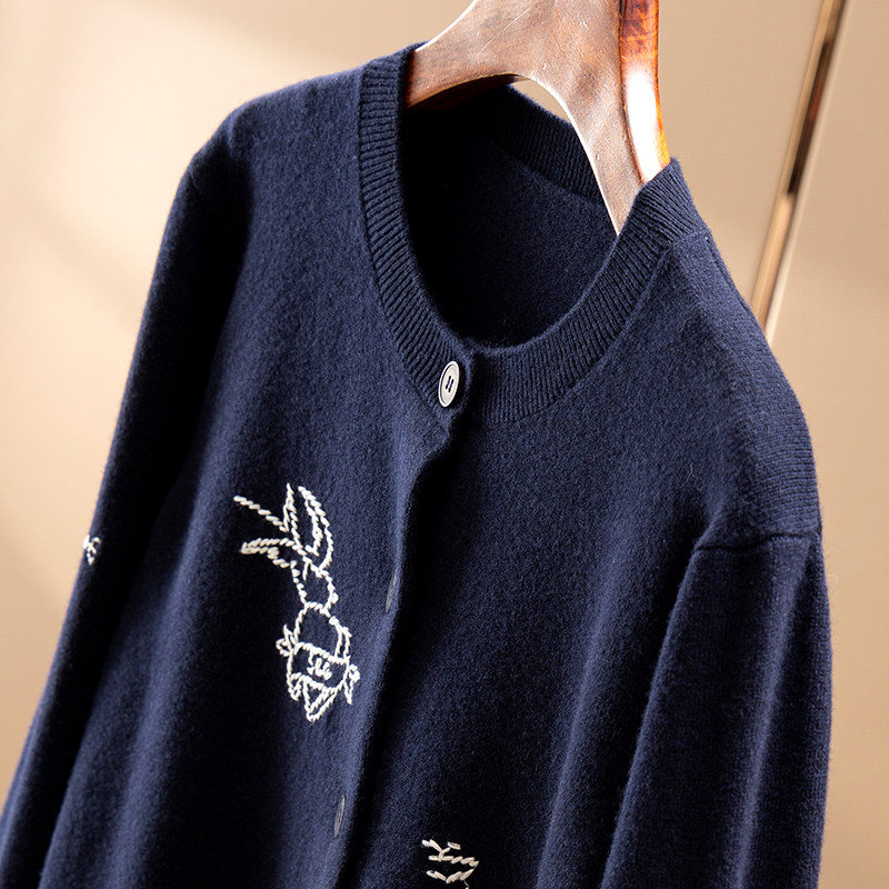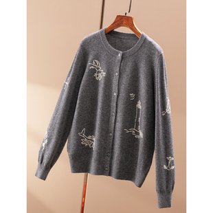高级感上衣宽松打底针织衫 圆领100%纯山羊绒衫 女高端毛衣秋冬新款
