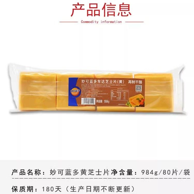 妙可蓝多芝士片干酪奶酪片即食汉堡三明治 黄片80片984g白片8包