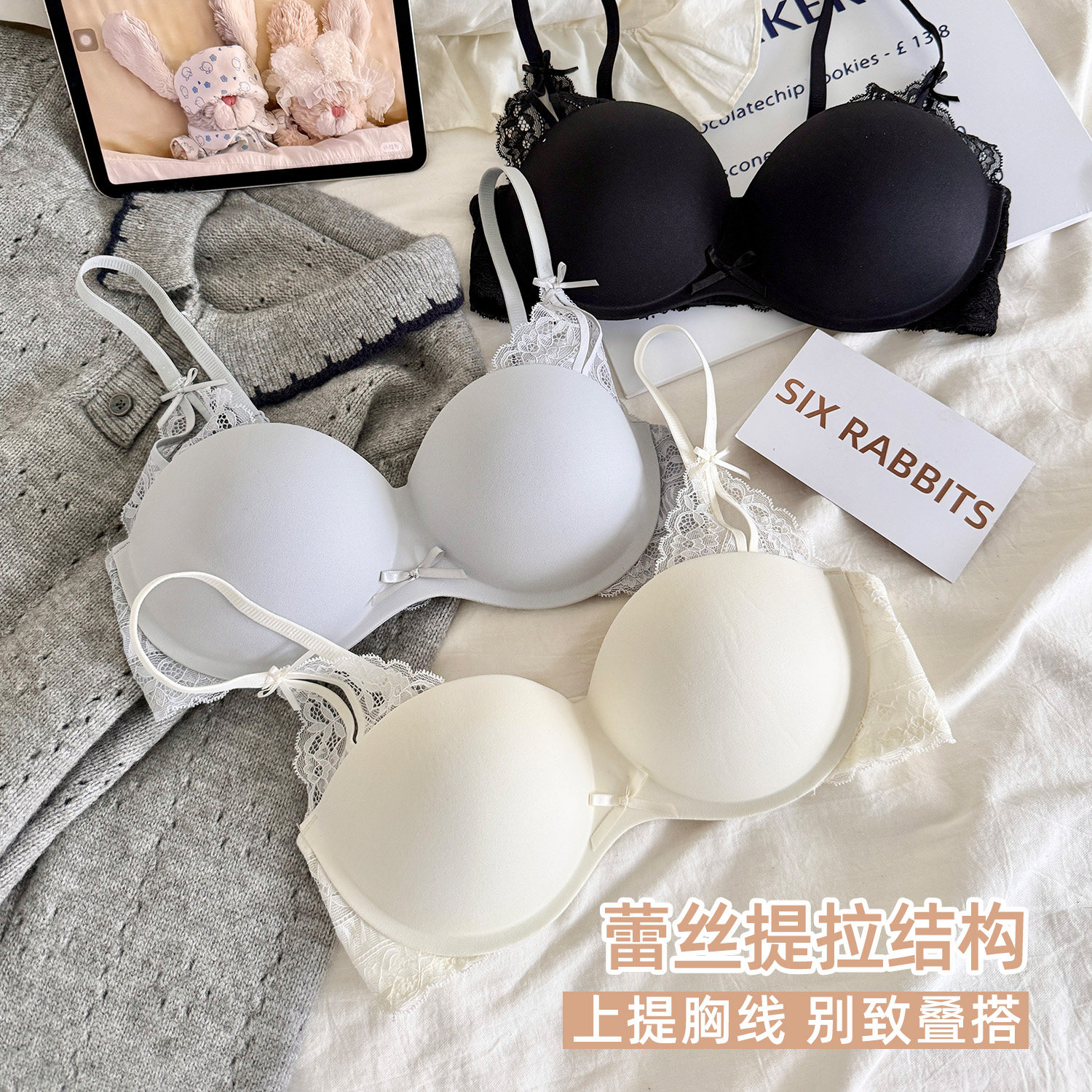 六只兔子软支撑内衣女聚拢小胸无钢圈轻薄款 上托防下垂防外扩文胸