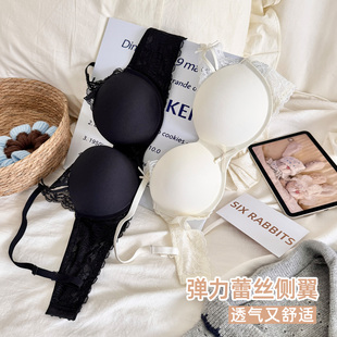 六只兔子无钢圈内衣女小胸聚拢胸罩侧收副乳果冻条软支撑无痕文胸