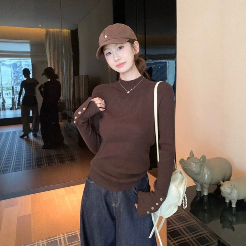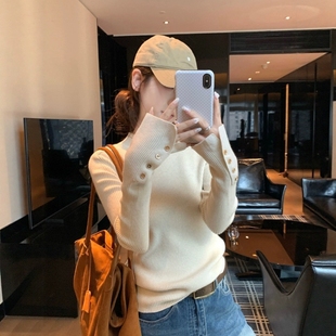 内搭打底衫 女秋冬小个子修身 独特别致上衣 针织衫 燕麦色半高领长袖