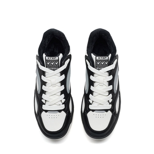 皮面运动休闲高帮板鞋 女官网旗舰正品 女 加厚保暖棉鞋 安踏加绒女鞋