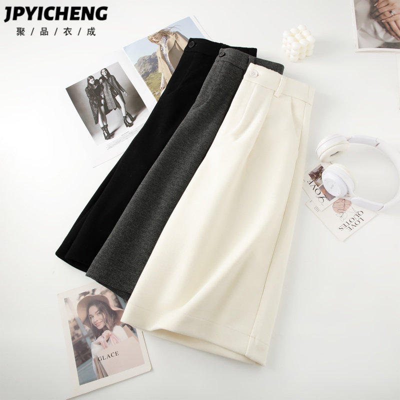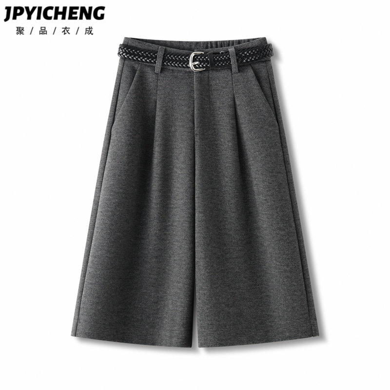 子女2026新款 中裤 春季 休闲短裤 高腰宽松直筒裤 白色羊毛阔腿五分裤