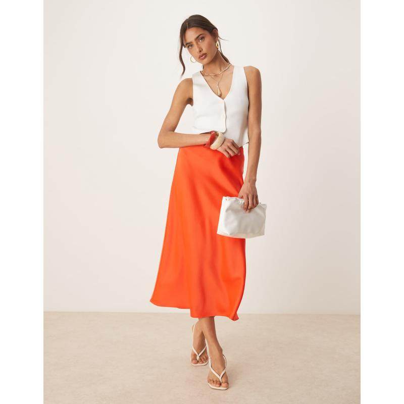 tomato 中长裙 缎面樱桃红中长半身裙 女士 YAS