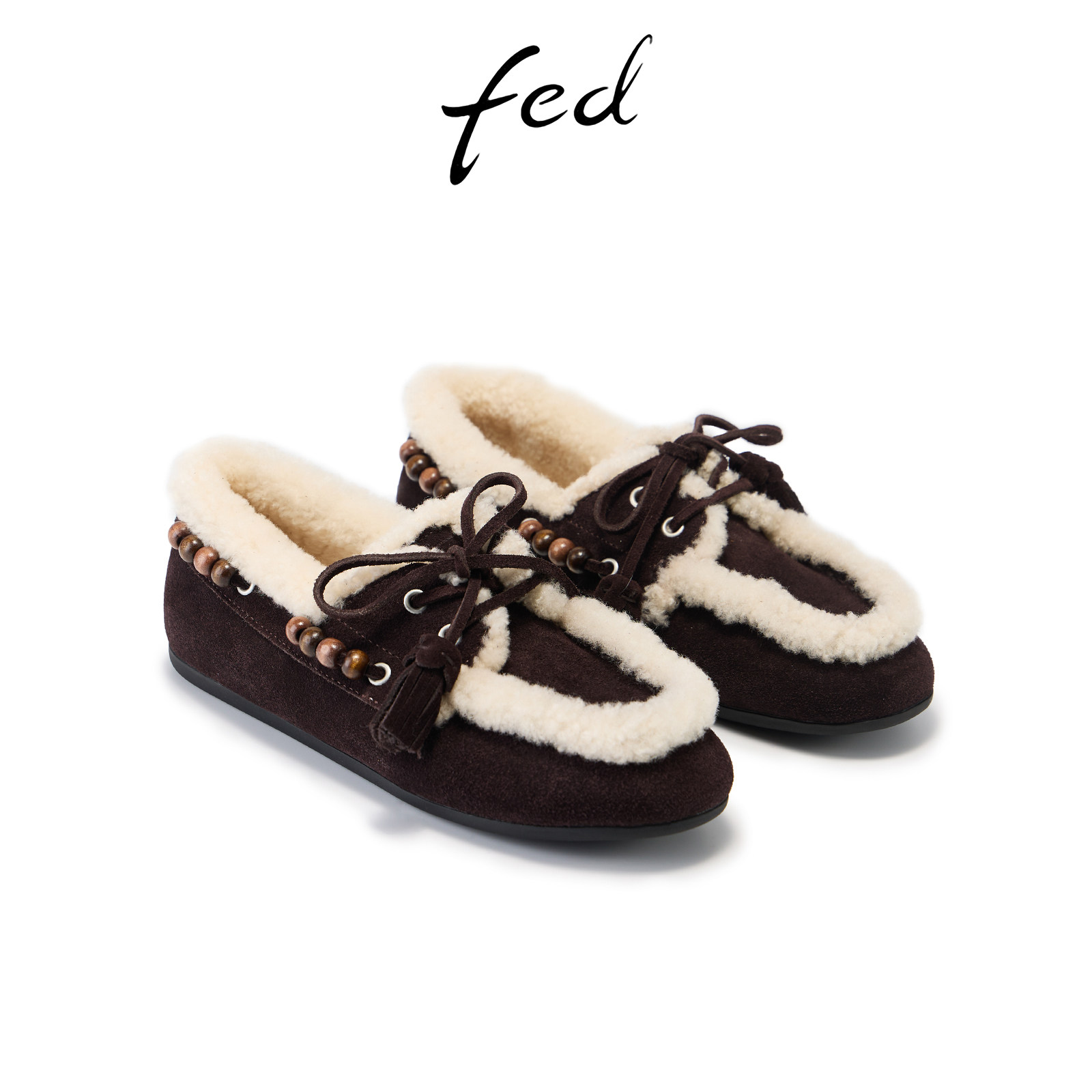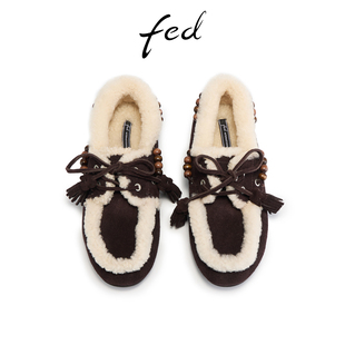 女鞋 新款 串珠毛毛鞋 保暖懒人单鞋 ZC739 fed加绒乐福鞋 女S1205 冬季