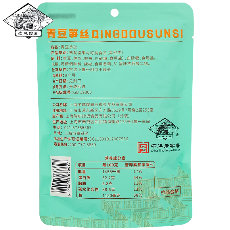 老城隍庙青豆笋丝笋干青豆毛豆 笋丝多味豆类上海特产零食200g