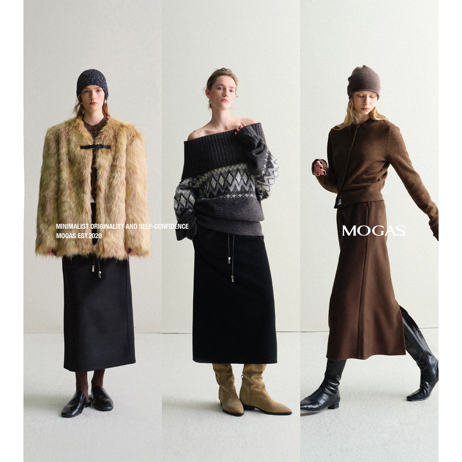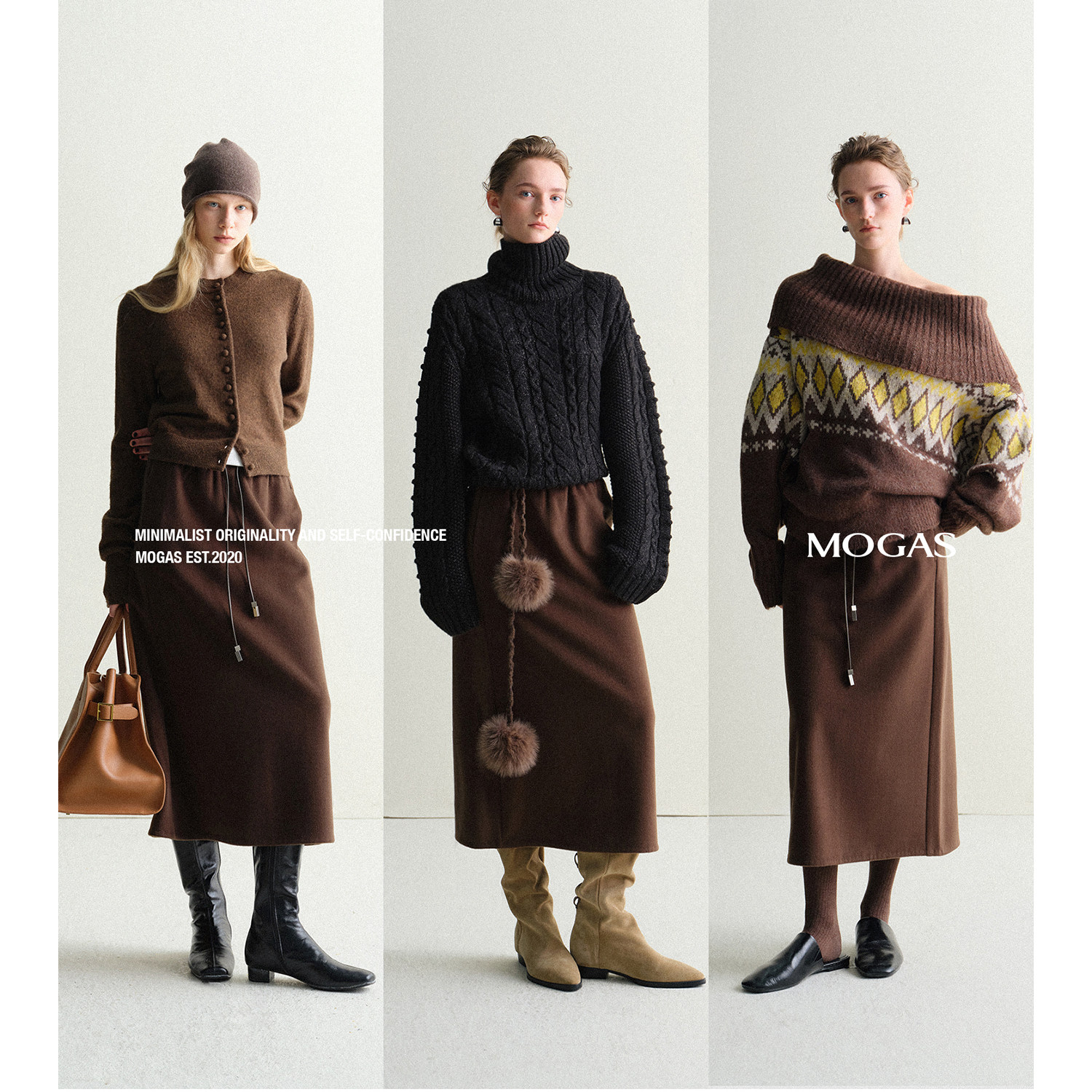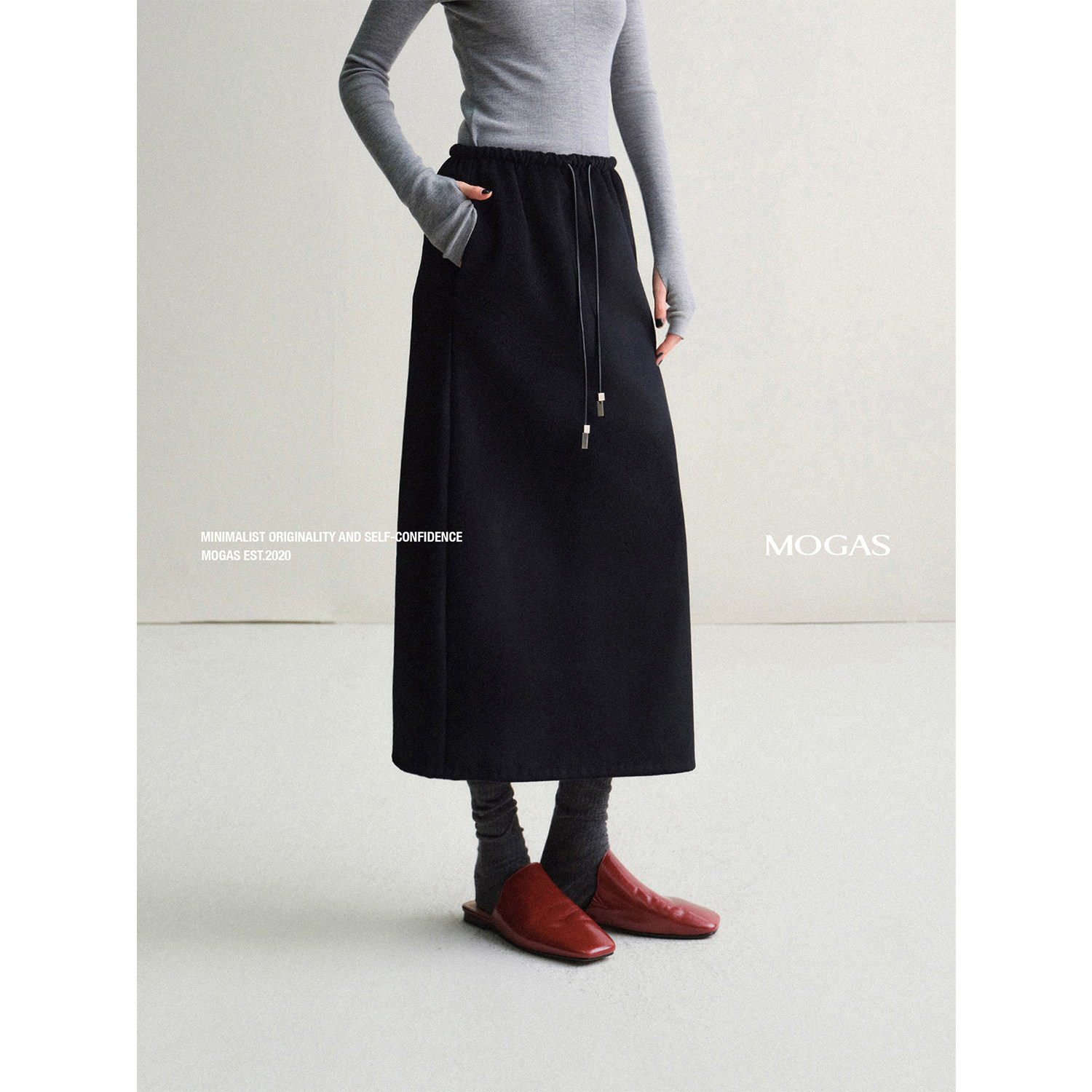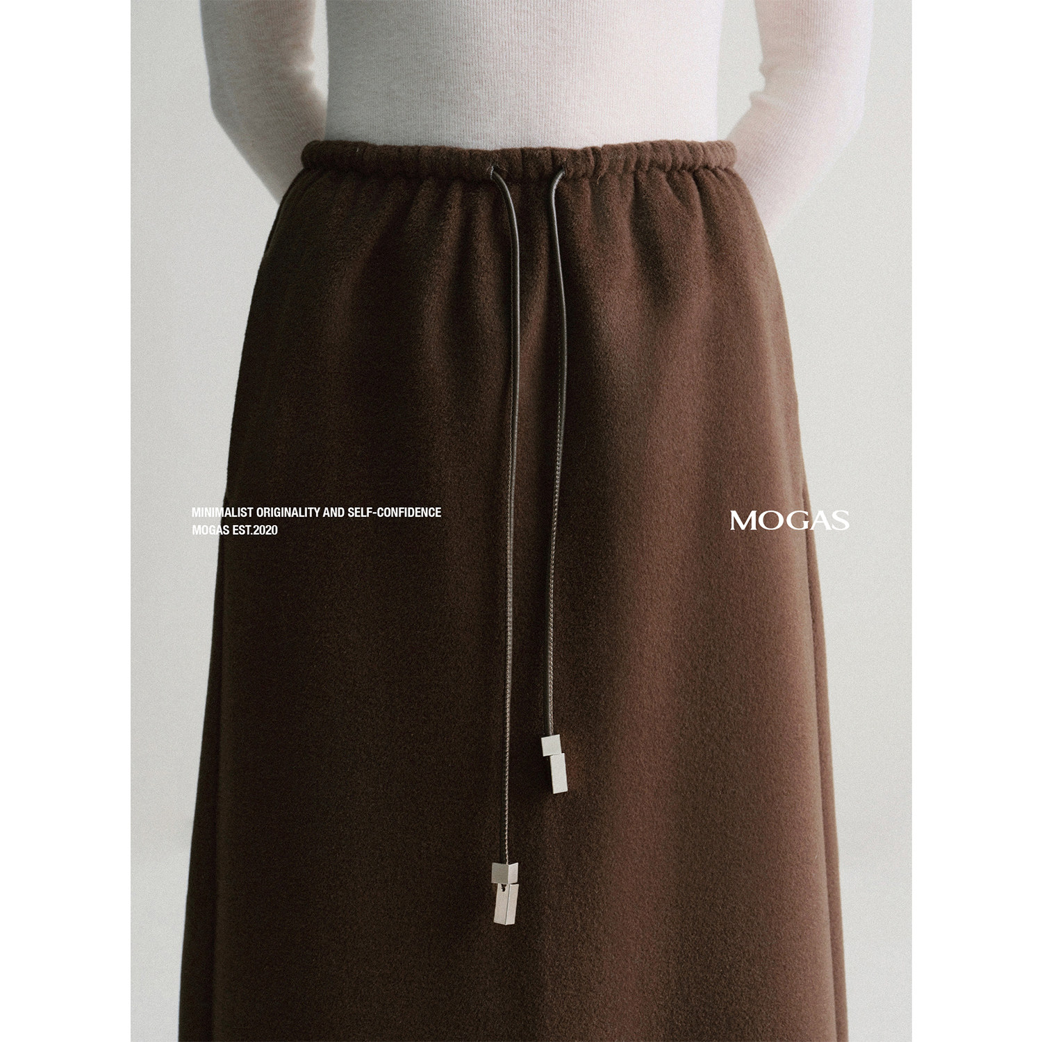 Mogas重工9010羊毛羊绒混纺经典 百搭绒感毛呢A字针织半身裙女冬款