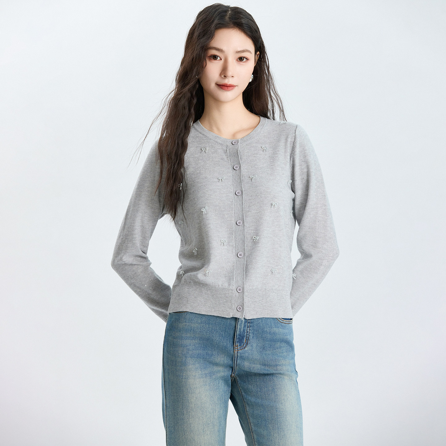 简爱诺钉珠蝴蝶结结衫 女长袖 开衫 外搭J2577020ZS JAN 针织衫