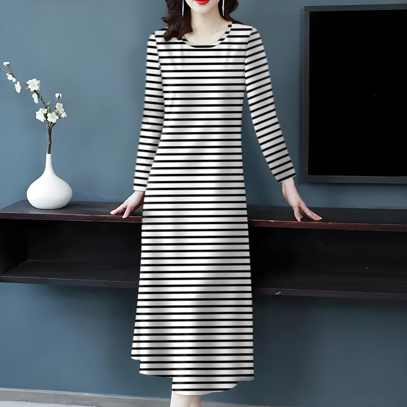 休闲慵懒风长款 连衣裙女新款 宽松显瘦长裙子 条纹气质长袖 夭夭依
