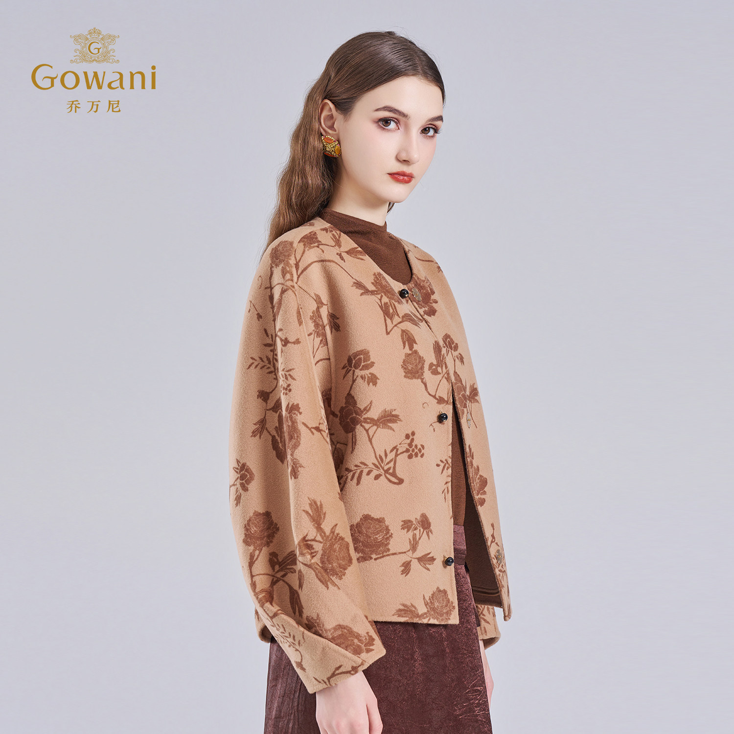 ED4B792 保暖上衣冬装 乔万尼绵羊毛新中式 印花毛呢外套女短款