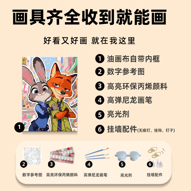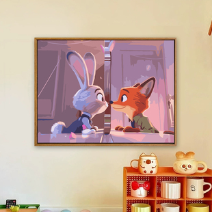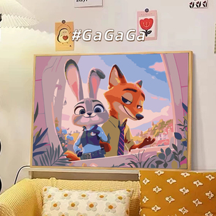 疯狂动物城2数字油画diy填充填色手工绘朱迪尼克可爱丙烯装 饰挂画